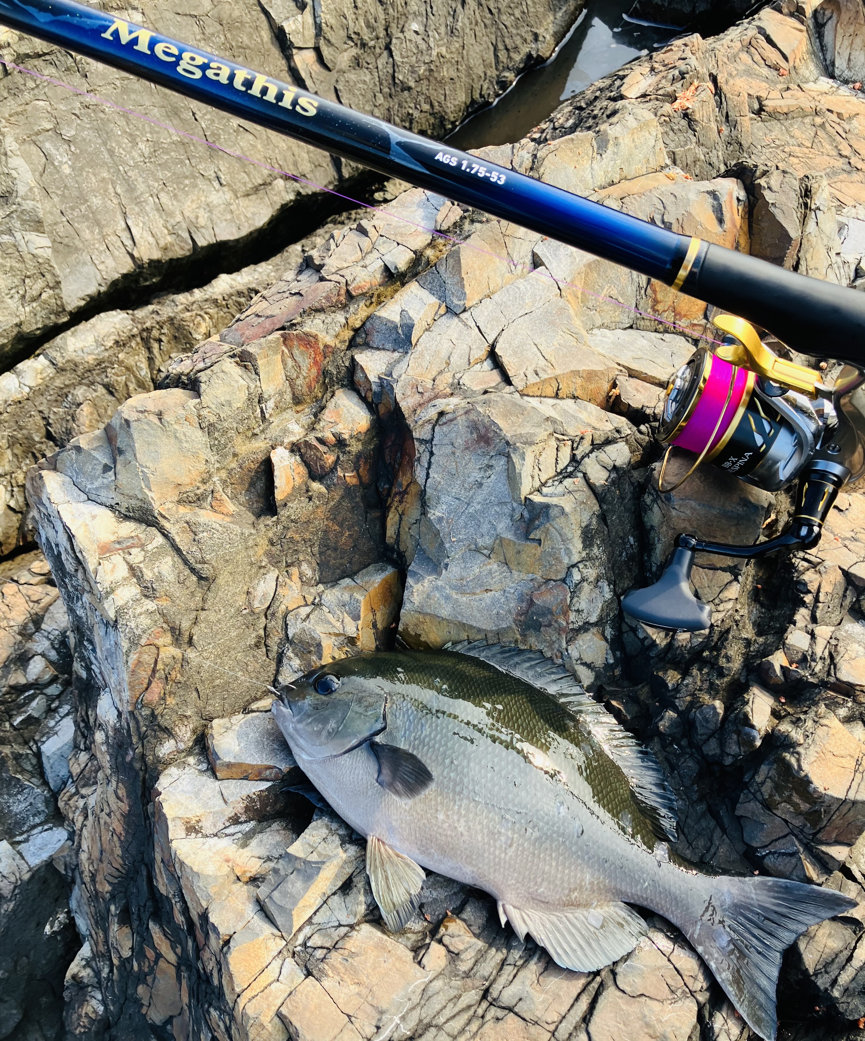 そんな好調の紀伊長島の磯で、今回はイサキ、尾長グレ、ブダイ、イスズミ、サンノジと荒磯での強烈なファイトをしてきました!