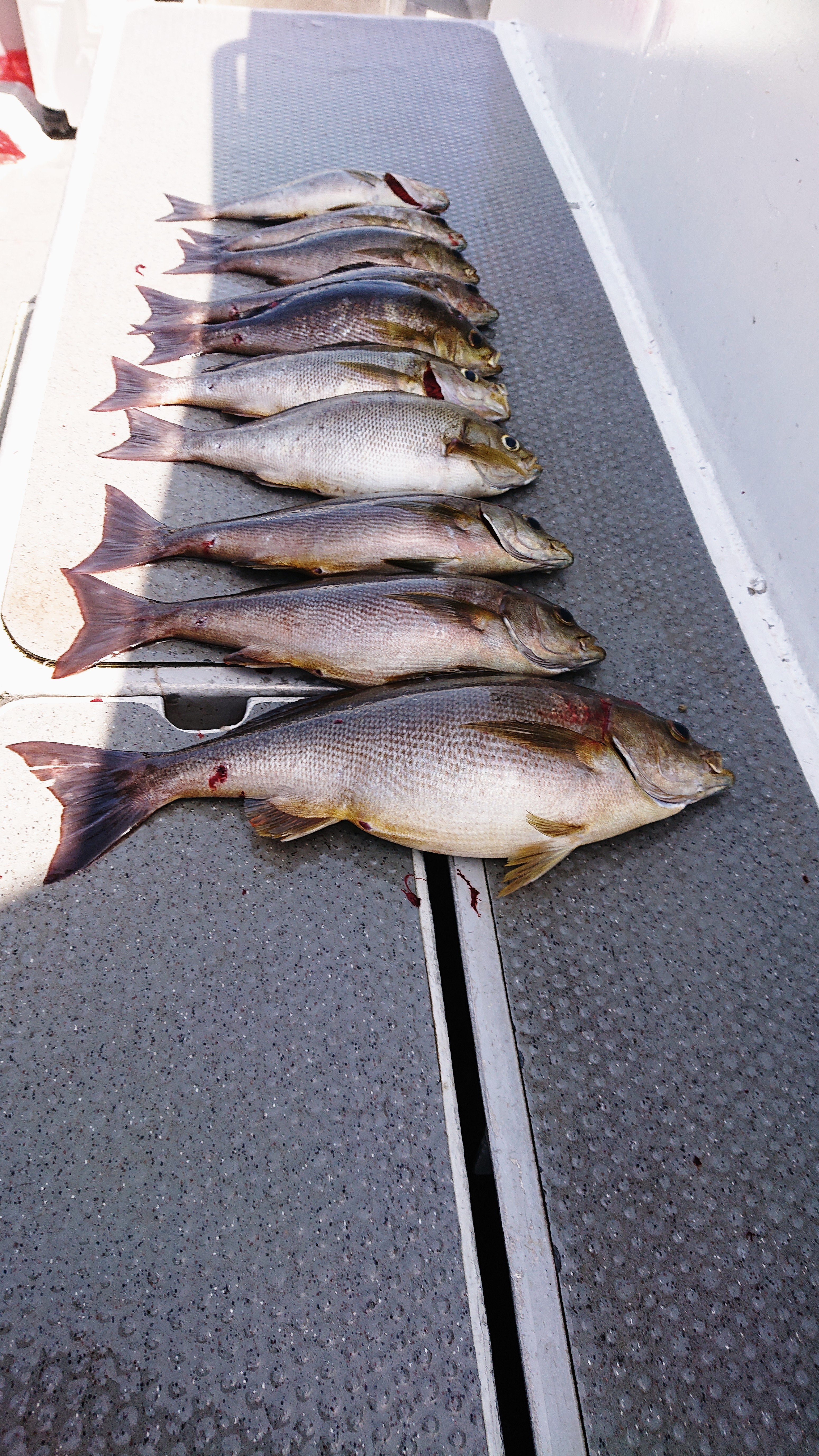 愛知県のフィッシング遊のメンバーで船イサキ釣りに行って来ました!使用した仕掛けは、ファンツールの「最強!イサキ吹き流し仕掛け」3号ハリスのものを使用しました。私は右舷ミヨシ側で開始時は満潮前でアタリが全くでしたが、下げ潮がききはじめるタイミング。二枚潮になり始めたところでパタパタと釣れはじめました。アタリは一番下又は二番目の針に集中してました!メンバーの中では30匹以上釣られる方も!イサキ以外にもソウダカツオやイサキの上からサメが食ってくることもしばしばありましたので、仕掛けは十分ご用意ください!