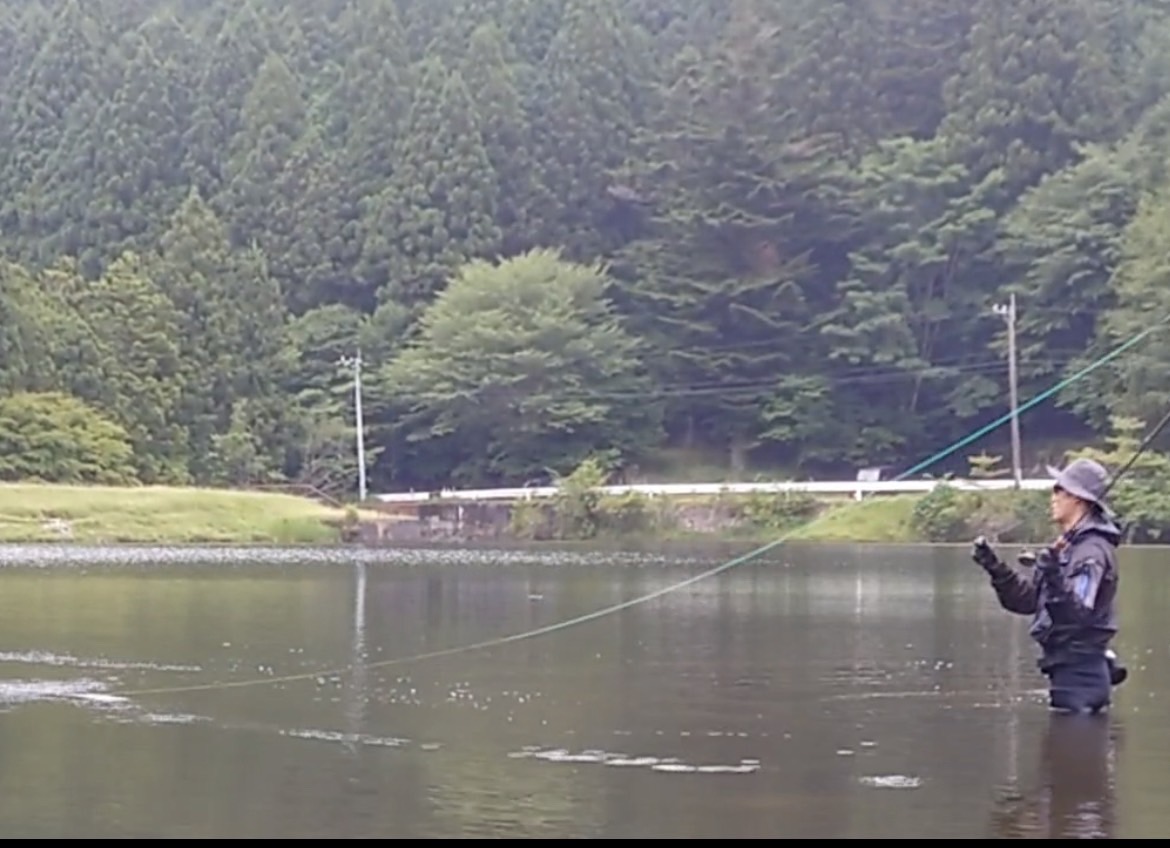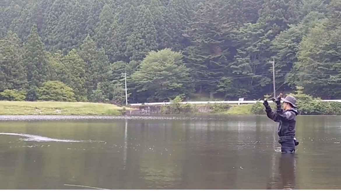 段戸湖でフライ!湖にウェーディングでのフライは最高のリラックスです(^_-)