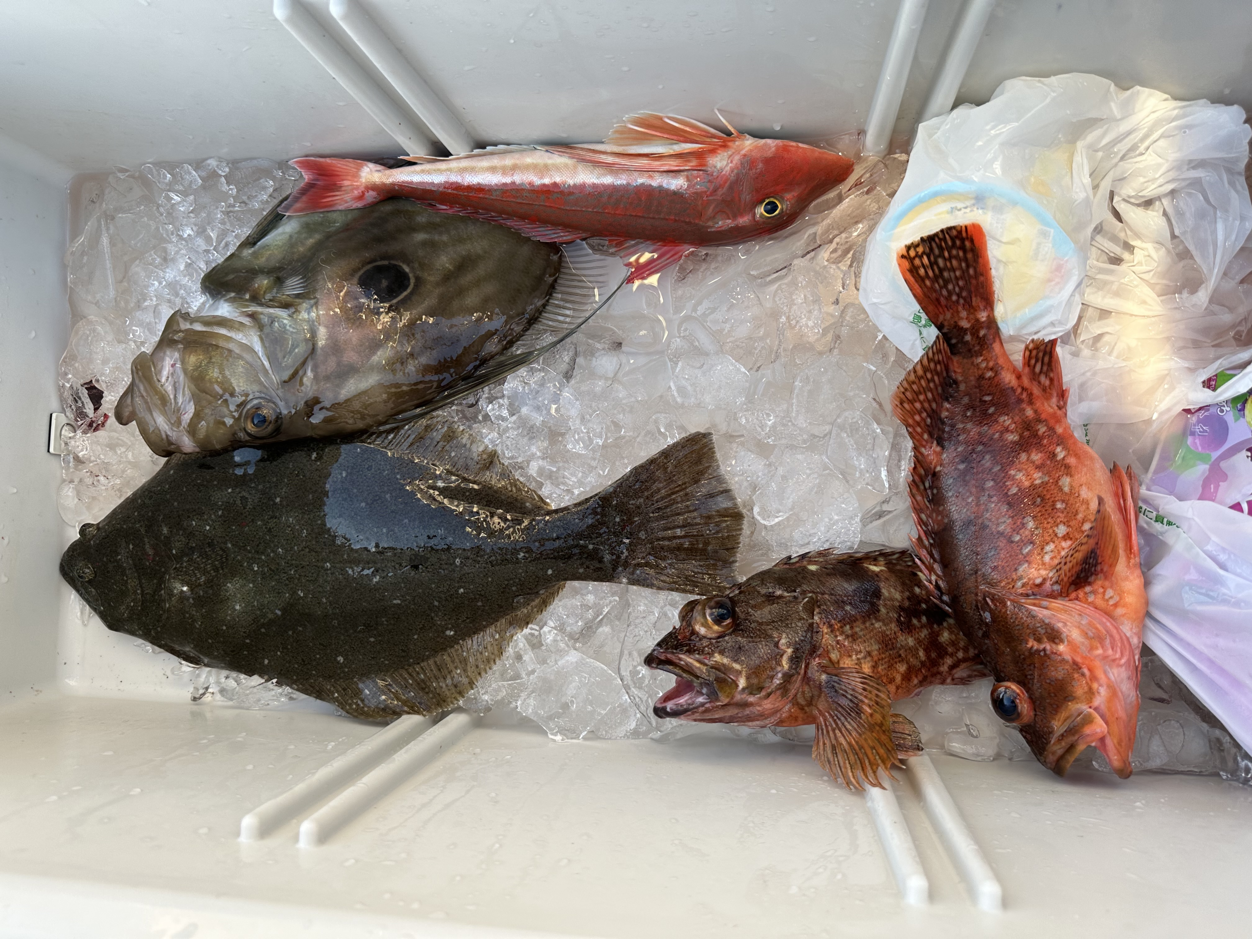 結果は船中でヒラメ、でかカサゴ、マトウダイ、ホウボウでした!
