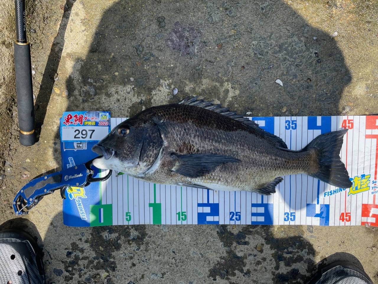 上がってきたのは46cmのチヌ!