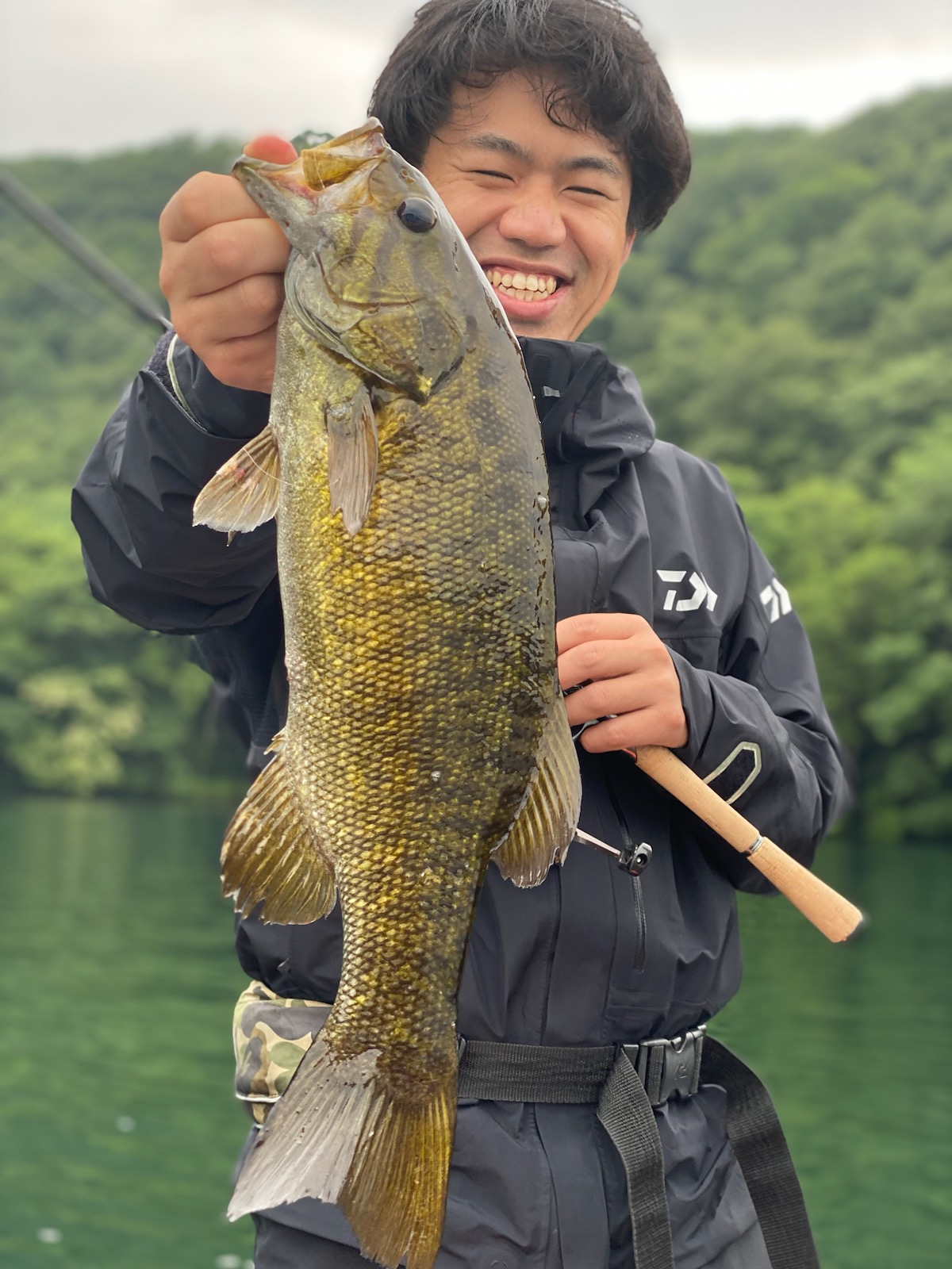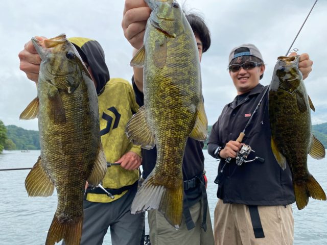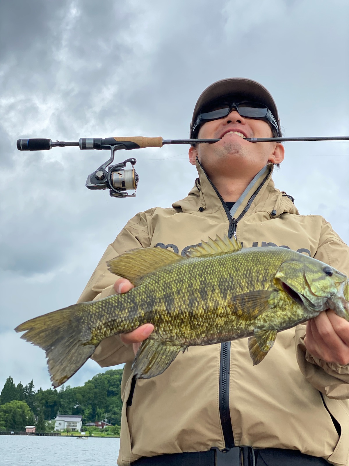 この日は野尻湖の人気ガイド・奥泉ガイドサービスにお世話になりました。最盛期の週末でプレッシャーもやや高めでスタート。この日はゲーリー4inグラブイモ仕様のキャロをズル引きとフォールで使い分け3人で40匹オーバーの釣果を目指しひたすらキャスト!。他のルアーでは全くアタリが出ない中、イモグラブだけにアタリが連発!好反応の具を見つけ気がつけば船中34本の釣果で終了となりました。スモールマウスには、4inグラブのイモ仕様がかなり効くので是非お試し下さい!
