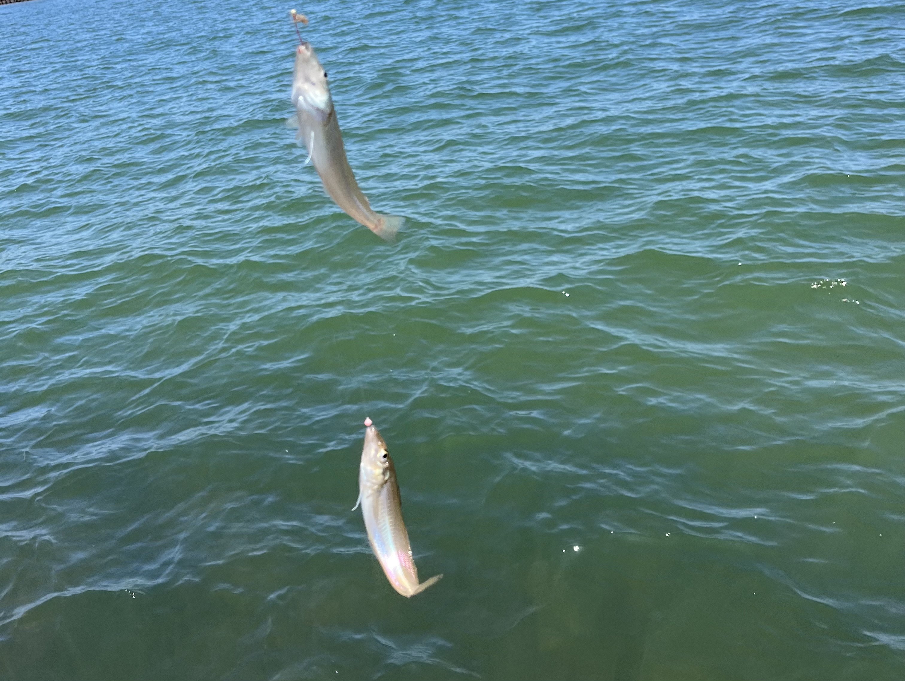 オモリは10号、針は8号で娘さんも使いやすいように、短いちょい投げ仕掛けの2本針を使用しました。