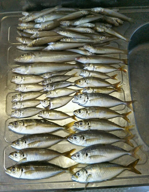 休憩して夜8時から魚を探しますがクロダイ小を釣るしか手が無く後半でアジが少し回ったところで何とか通常サイズを8匹確保、後はマメアジになってしまい朝3時半終了です。