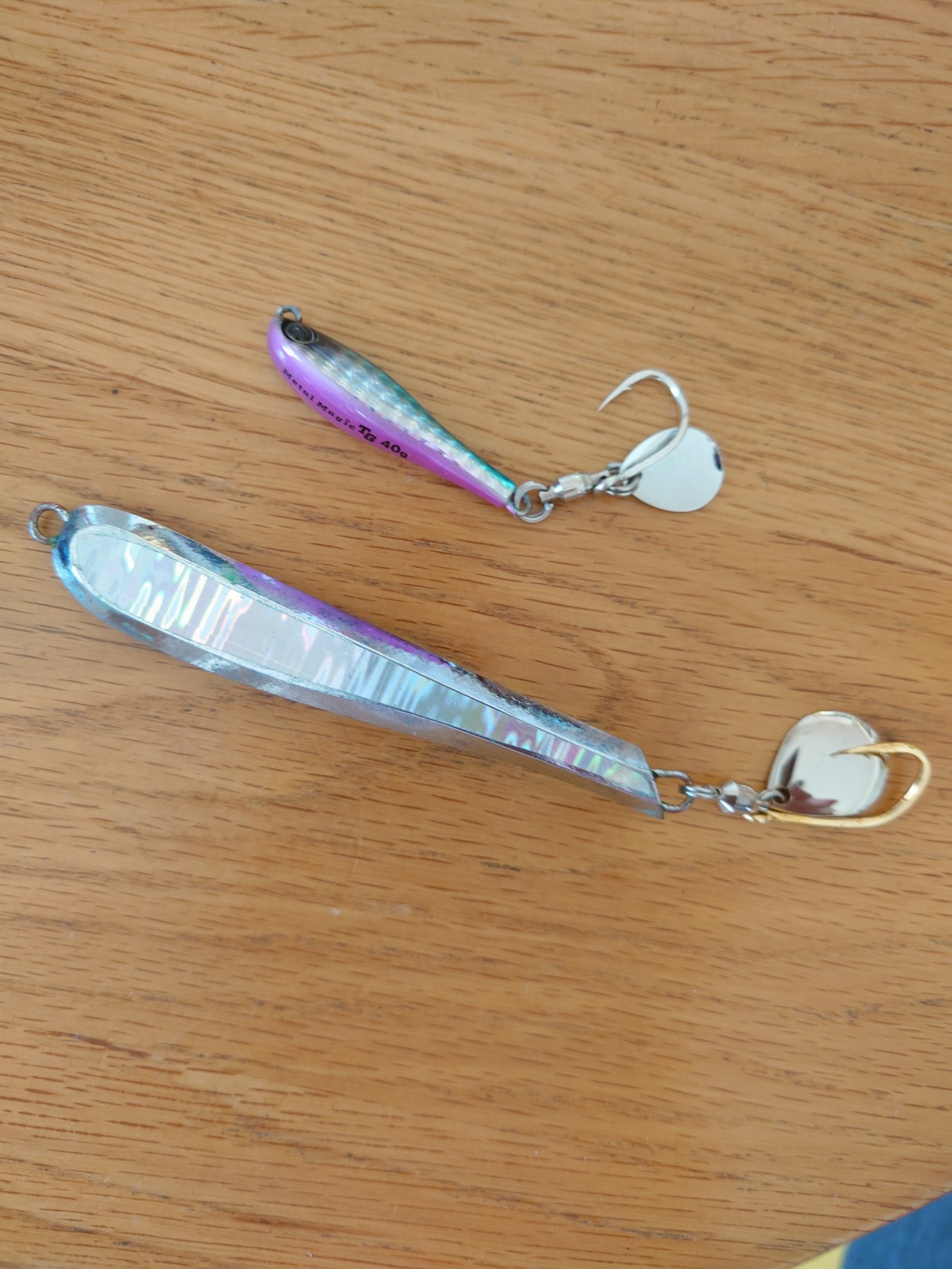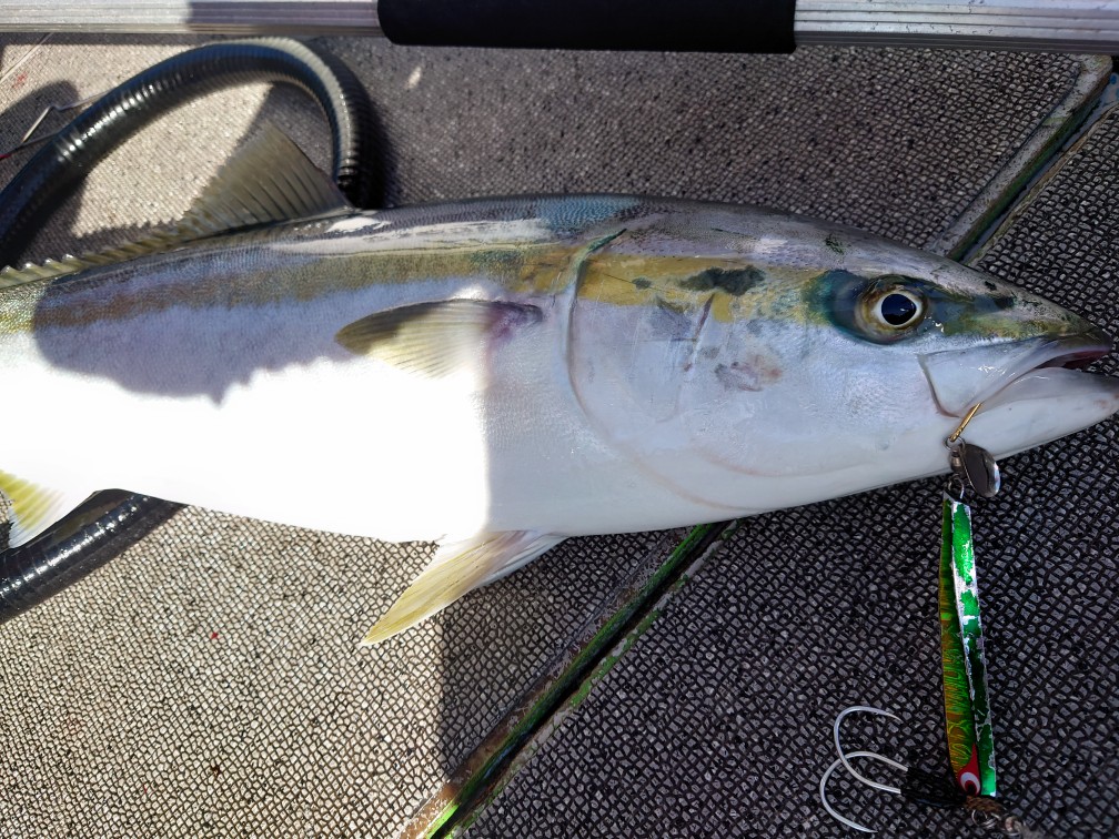 鳥羽石鏡のオーシャンズマロンさんでdayバチコンとジギングで釣行。まずはジギングから時合にはハマチやワラサがいい食い方で連発しました。私には来ませんでしたがドラゴン級太刀魚やサワラのおまけつきです。ジグは140gTGヒデヨシ+リアにブレードフックを使用。この組み合わせ青物は最高に良く当たりました。ただまきワンピッチやストップでOK。