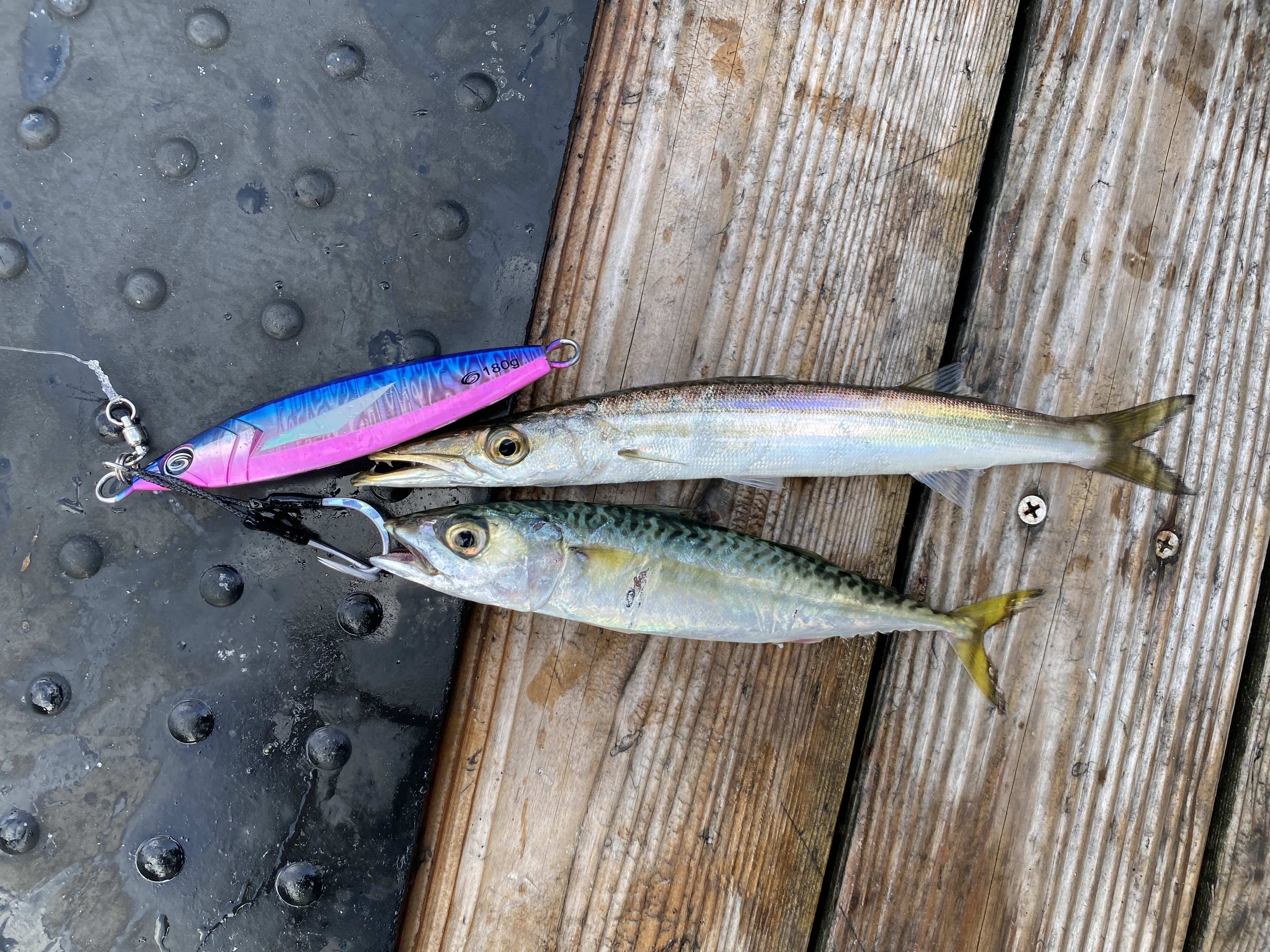 小型のサバやカマスの回遊もありアシストフックにダブルヒット。