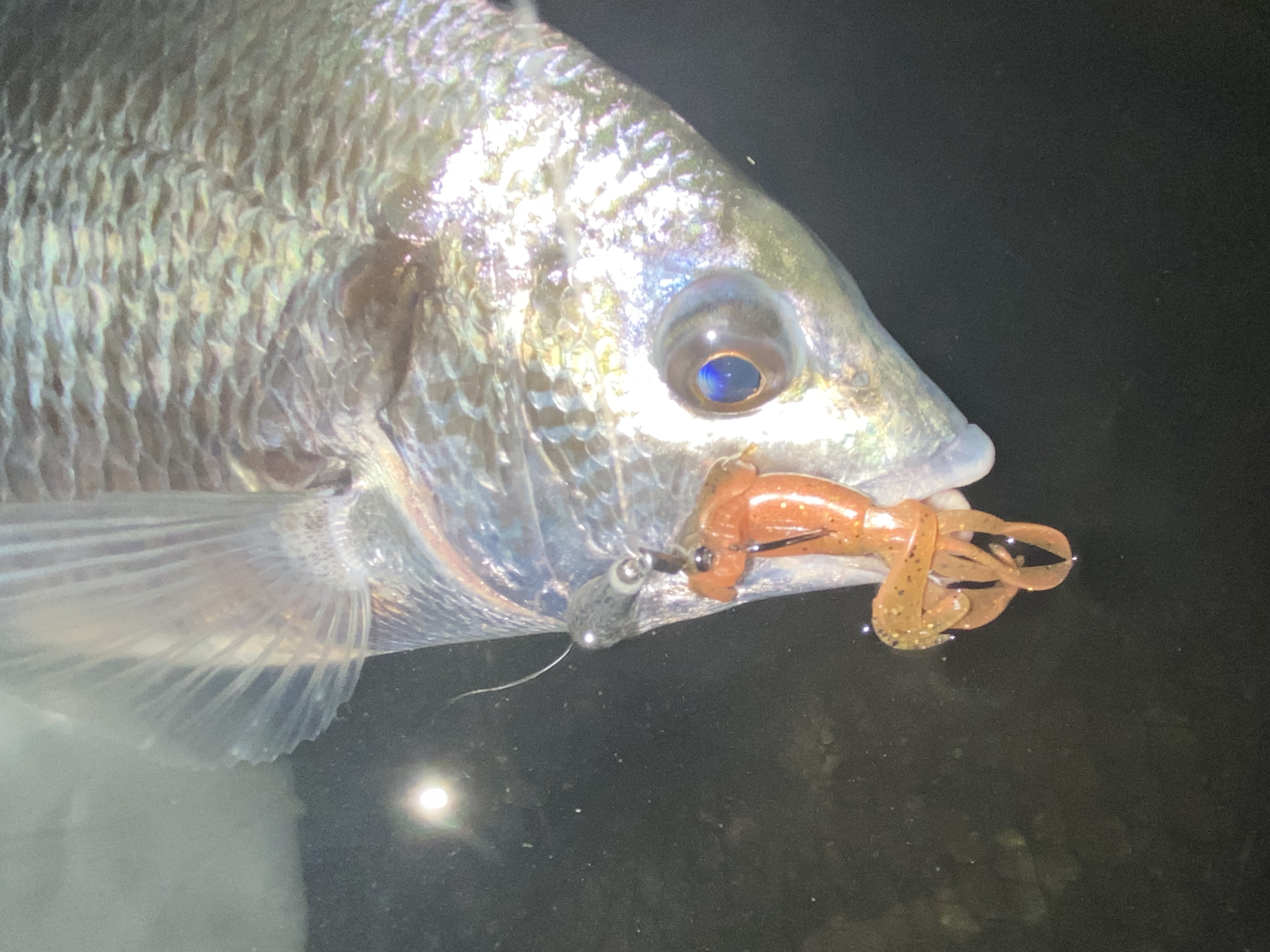 ヒットしたのは30センチ台のキビレ。久々にタイ族の豪快な引きを味わうことができました( ˊ̱˂˃ˋ̱ )
