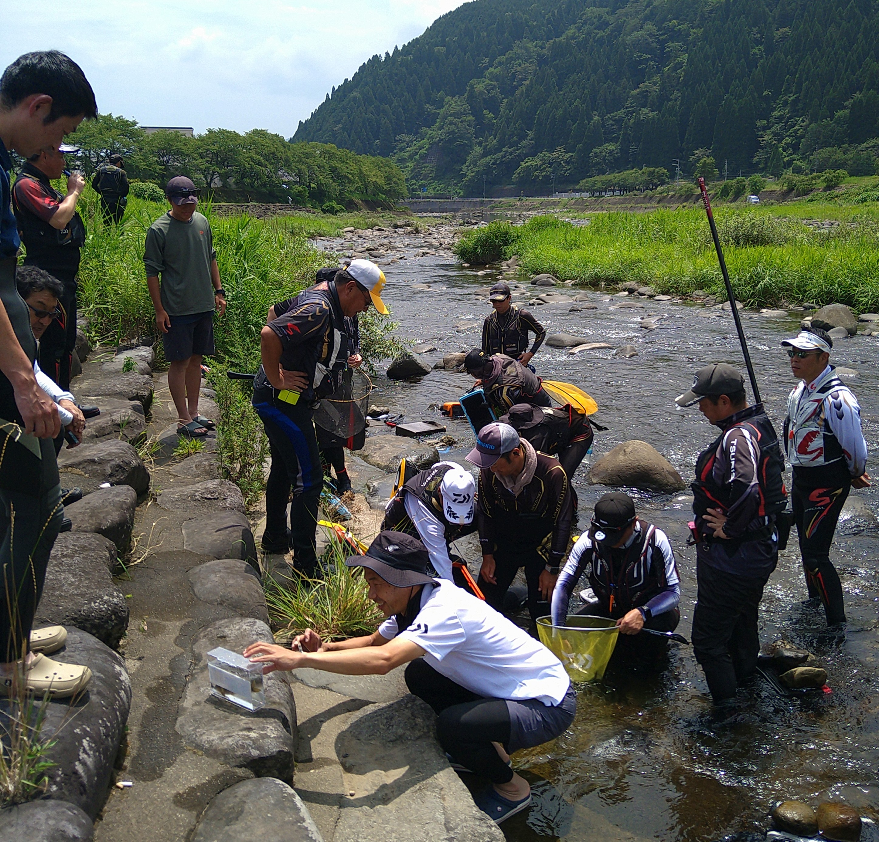 今年も社内鮎釣り大会に参加してきました!年間1回の長良川釣行です(^^)ウィンドパークに集合して7時開始の12時帰着!白鳥の専用区に入川!初めてのポイントです!ポツリ…ポツリ…掛かり!?何とか込み12匹(*´ω`*)本線より分流のが釣れました!大会の結果は、7位(≧▽≦)上出来です!