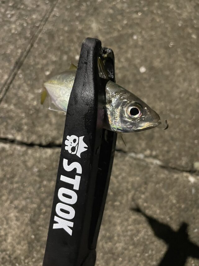 イカの少ない常夜灯へ。こっちですぐにアジ!風が強い日はラインでアタリを取るのがGood!
