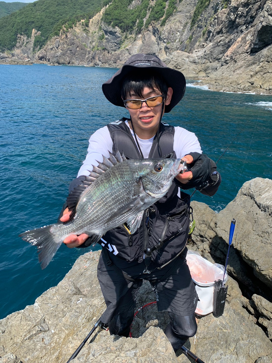 お盆も終わり、さて涼しくなっていく頃合い。少し(かなり)早いですが、磯釣りへ行ってきました。メインはグレですが、ハードロックも少々やりたかったので、ルアーロッドも持っていきました!今回はスタッフさんも行きたいとのことで一緒にいきました。磯は思っていた以上に激暑。少し生命の危機を感じました。しっかりと水分は持っていきましょう。磯の様子は、魚種豊富!時折シマアジらしき魚影やアオリイカも見えました。朝はイサキの時合でパタパタと釣れ、日が昇ってからはグレ、イスズミが半ヒロくらいの所まで上がっていました。3回かかりましたが、思いっきり下のオーバーハングに巻き込まれて駄目でした。根魚は沢山いるようで、バルト3.5インチと静ヘッド14グラムで底に落としてゆっくり巻いて来るとよくあたりました。グレは、思っているサイズを仕留められてないので次回リベンジです。