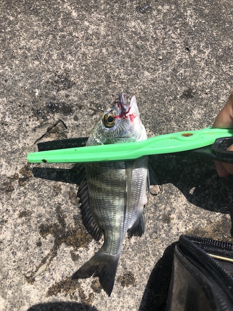 今日はトラブルなくスムーズに開始できました。オキアミでオオモンハタが沢山釣れましたが急にエサが残るようになったので激荒を投入!!オキアミ、コーンで何とか手のひらサイズの黒鯛ゲット!!