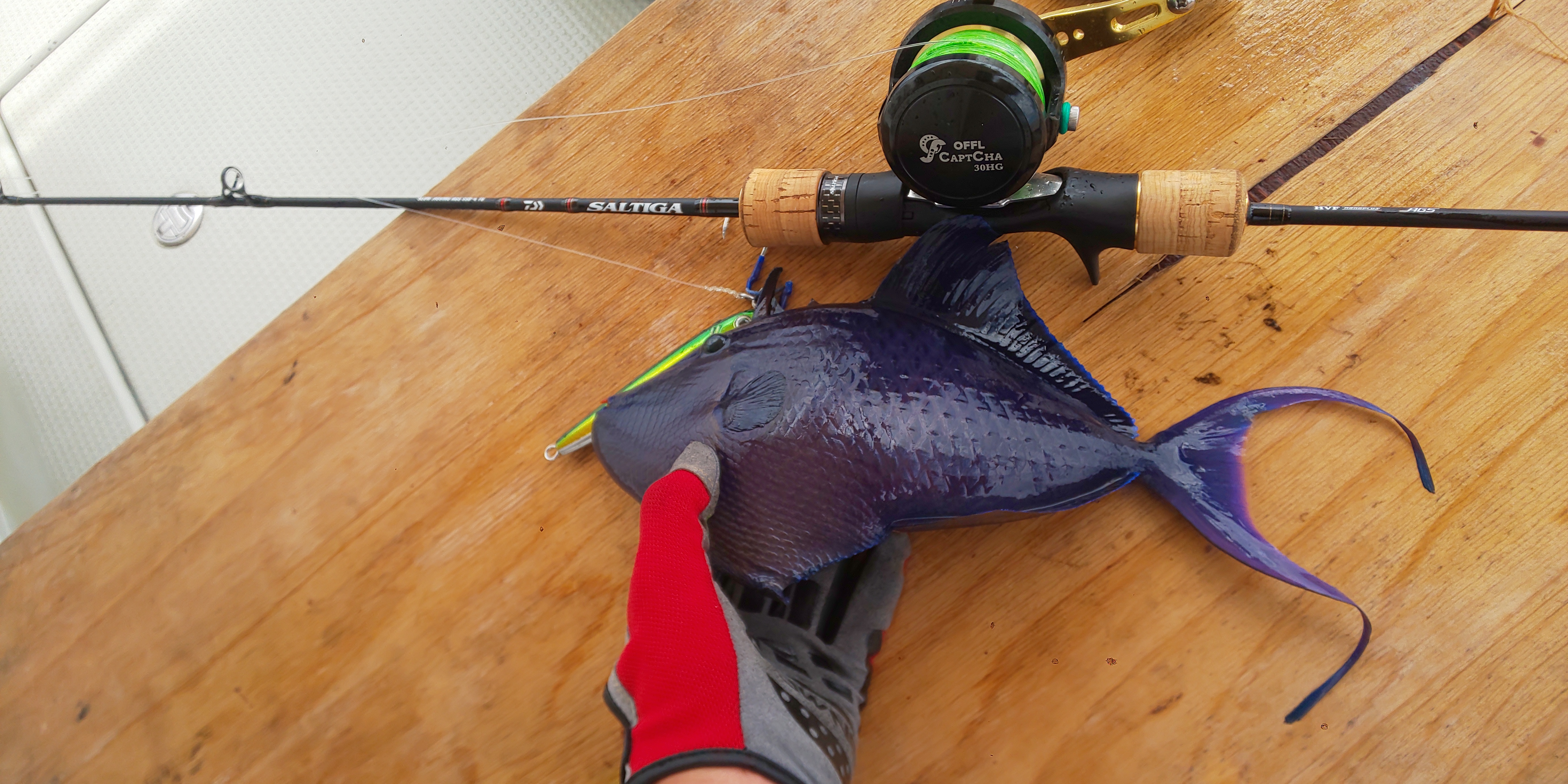 今回は海況悪く、gtは出ませんでしたが、休憩のタイラバ、ジギングではカラフルな魚が楽しませてくれました。