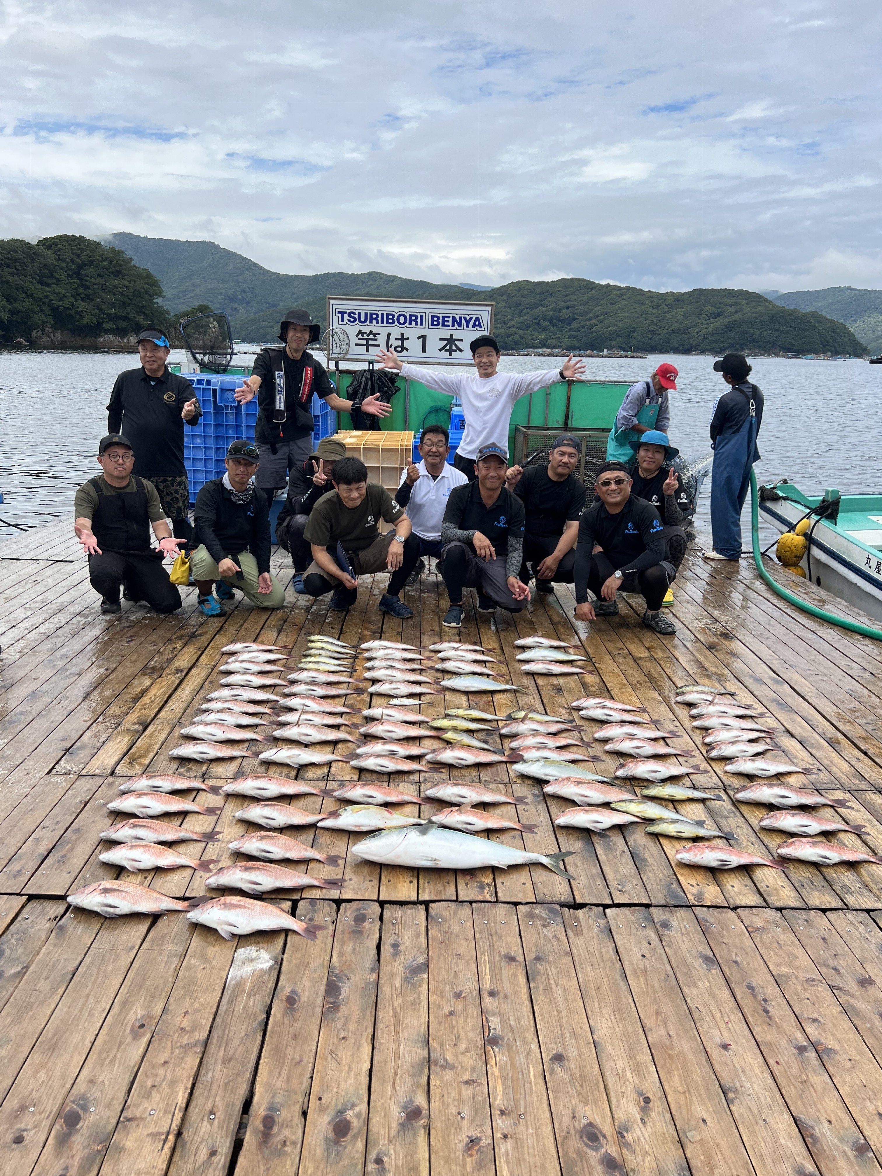 つりぼりばんちょう、澤村です。今回は本職の海上釣堀!辨屋(べんや)さんで遊ばせていただきました!今回は、総勢18人の大所帯での釣行。ワイワイガヤガヤと楽しい釣行になりました。釣果ですが、当日は赤潮のような状態で潮の状態が非常に悪く、辨屋さんも困るぐらいの潮でしたが、そこは釣り好き集団。なんやかんやと総数80匹越えとなりました(^^)この状況は、浮き釣りよりも、流行りの脈釣りで攻めるほうが良かったです。タナは底ギリギリがよく釣れました。エサは生ミックなどのダンゴエサ、シラサエビ、アオイソメなどが実績ありました。9月ですが、暑さ対策をしっかりして釣りを楽しみましょう。