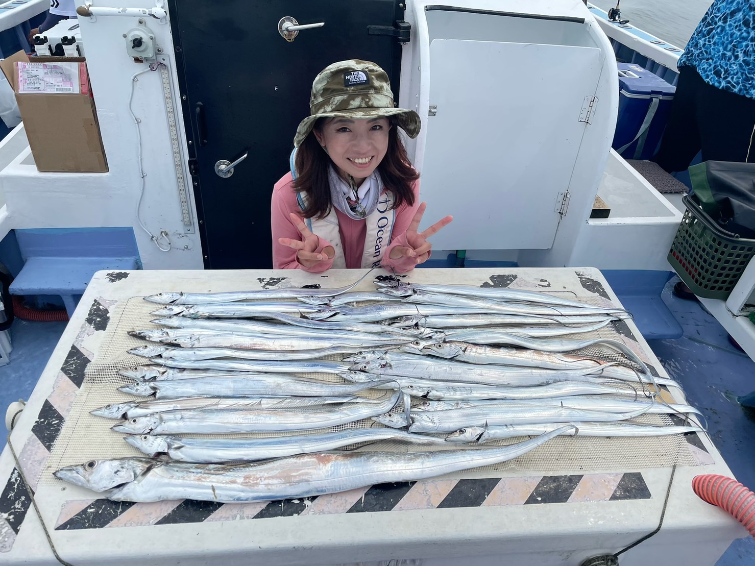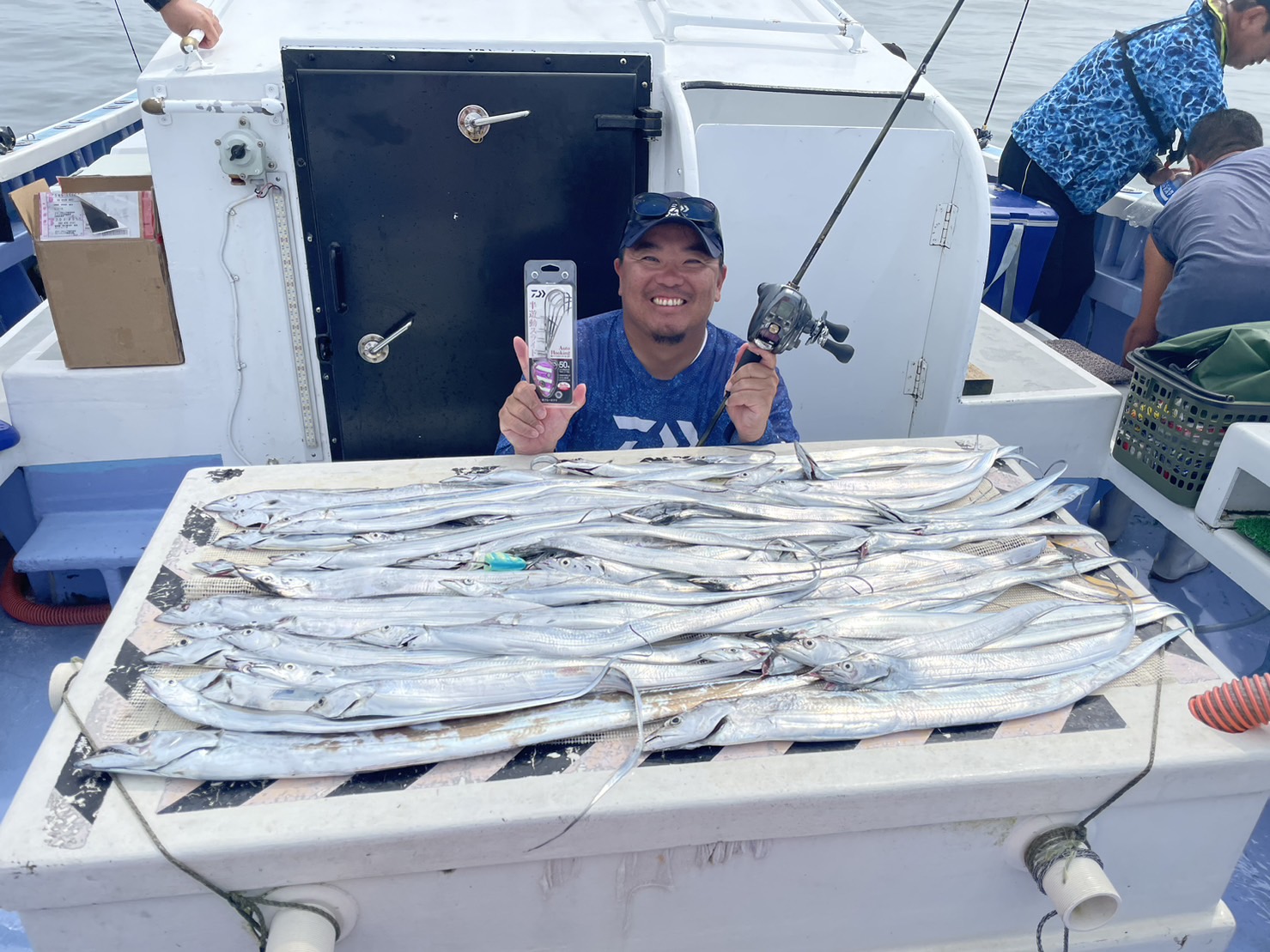 片名漁港出船の「忠栄丸」さんに行ってきました。今回は「テンヤタチウオ」。テンヤタチウオの名手ダイワの菊池さんと行ってきました。ドラゴンタチウオの姿が気配が薄くなり、小型が出始めたタイミングでした。テンヤは60号。小型のタチウオが多いせいか、PEラインが切られることがあるのでテンヤは多めに準備を!指4本クラスまでは出たものの3本がメインの釣果でした。アタリがあったら逃がして逃がして…掛けていく!名手の釣り方をしっかり見ながら、菊池さんは爆釣!まさかの102匹!!流石です!!