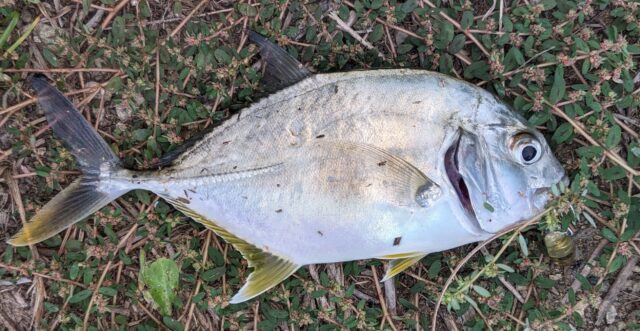 さらにしばらく投げ続け、ちびヒラセイゴをGET。そろそろメッキタイムにならないかな…