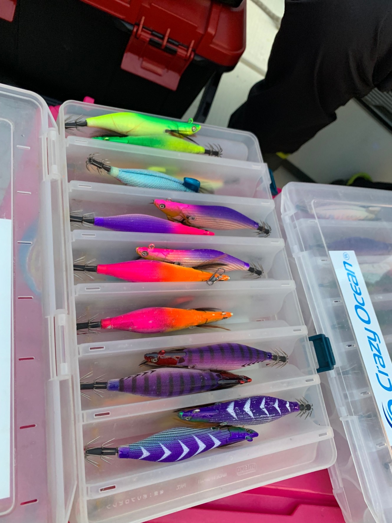 今回は三重県、五ヶ所湾のティップランに行ってきました。朝5時半頃出船。湾外の水深30〜40mの深場から。ティップランナー3号にオーシャンシンカーVの15から30gを風や潮の流れの速さでチェンジしながらシャクリます。幸先よく私にファーストヒット!結構な重量感と引きで良型アオリイカをゲット!色はやはりパープルが強かった!同じポイントで船中バタバタとヒット!良い群れに当たったようですが長続きせず。それでも頑張って集中するとバタバタと連鎖ヒットで2人、3人同時ヒットもあり平均サイズも良かったです。昼前には爆風となり湾内のポイントも回ってもらいポツポツ追加できていました。最終少し渋い釣りでしたがボリュームある釣果となりました。深場のティップランはまだシーズンとしてもこれから本番。ズシッと重々しい引きを味わいに行きましょう!