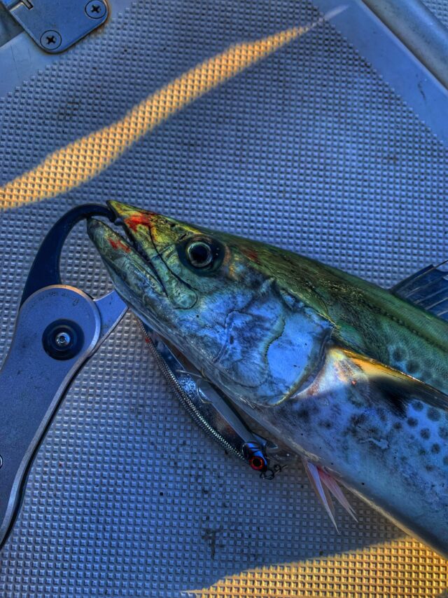 伊勢湾の釣船オーキッド様にお世話になり、サワラキャスティングへ行ってまいりました!!この日は午後便にて出船!!昼1はなかなかナブラやジャンプがなく、夕方からはパラパラとジャンプ!!狙い撃ちでサゴシをゲット!!まだベイトがかなり小さく、TGのジグやサゴシチューンがおすすめ!!これからベイトが大きくなれば大きめなミノーてサワラが連発しそうです!!