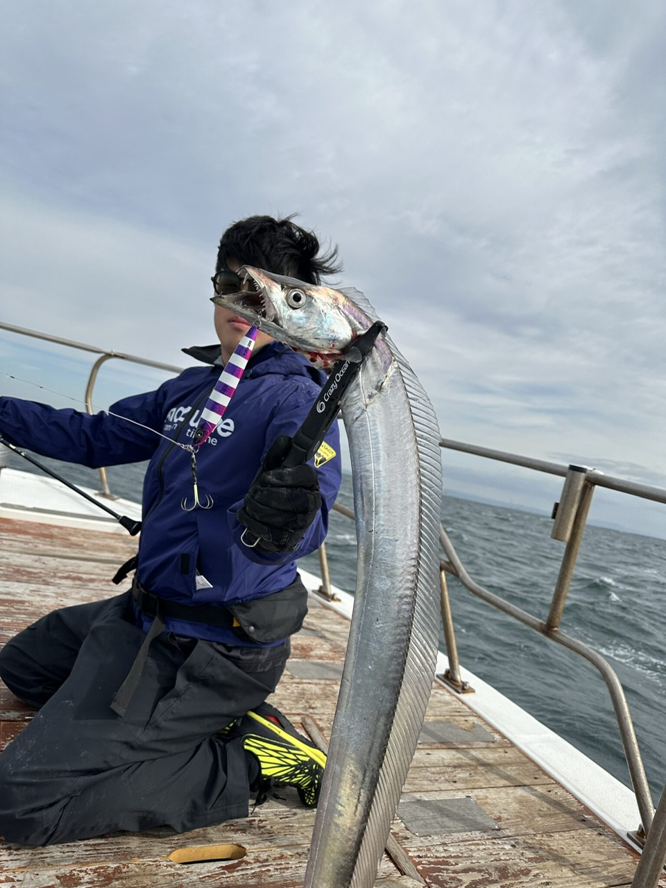 何ヶ月ぶりかの青物の引き楽しい!すると船べりでフックアウト、、今回はダメダメでした、、その後再びタチウオに癒されてもらい終了しました。