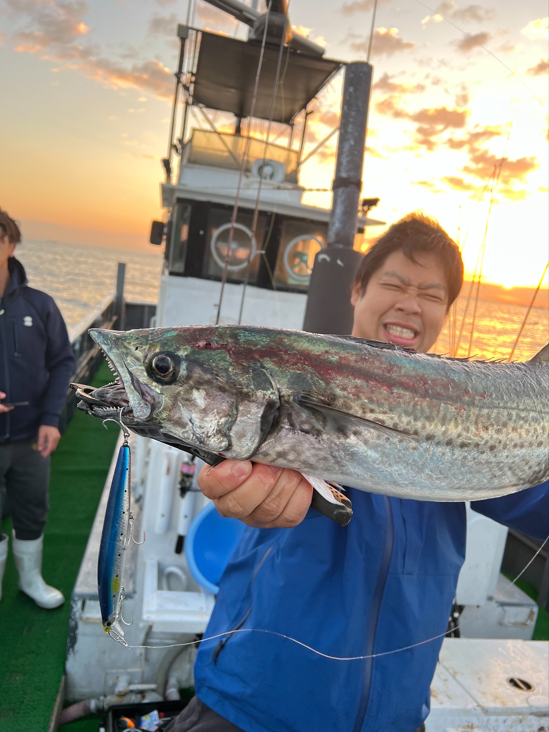 日が昇る時間に潮目でジャークでドン!サゴシではない重量感の魚がヒット!引き方でサワラを確信してゆっくりとネットイン!85センチのサワラでした!重さも3.6キロあり、よく脂がのって美味しいトロサワラでした!