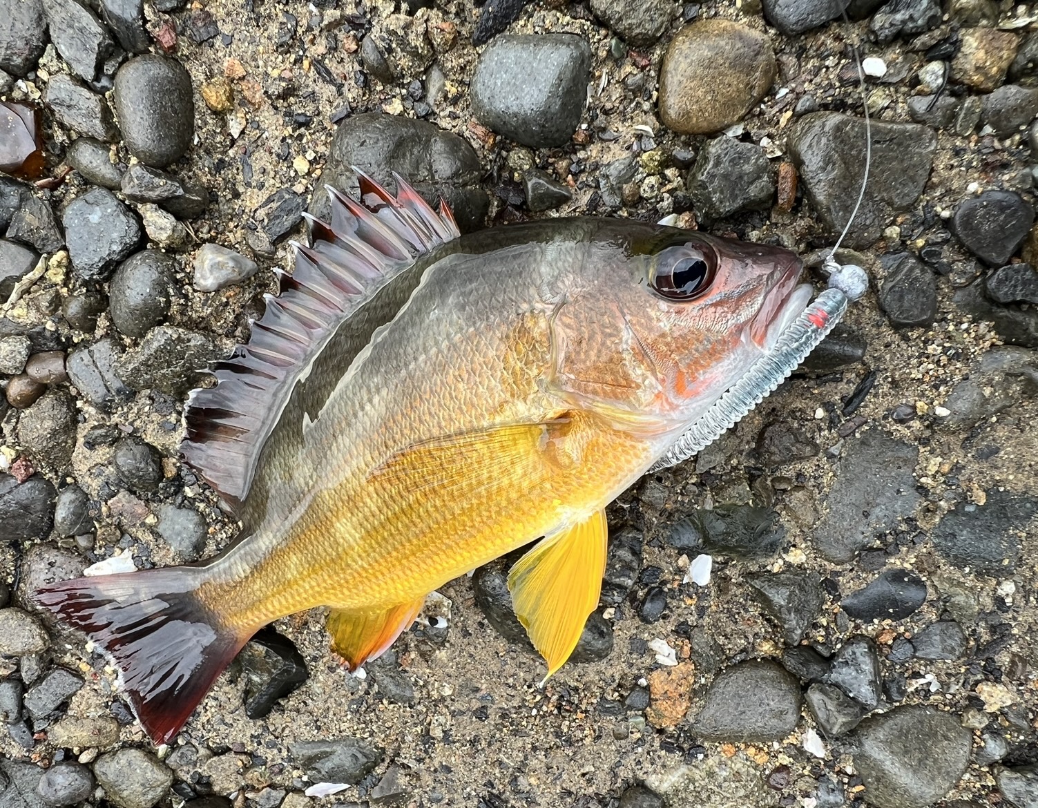 南伊勢方面の堤防からライトゲームを楽しんできました。本命はメッキ!最近はよく釣れているという情報もあり朝4時半には家を出て日の出ごろにスタート!ボコボコを期待いましたが満潮だからか反応が、、?弱い。同行者と合流するまでに20cmクラスを1匹上げられました!サイズに見合わぬ引きはやはり強烈。トップに反応が薄いのでボトム付近を狙うとバイト連発。rainsのアジアダーにてヒット!他にもフエダイ系の魚がたくさん遊んでくれました。トップなら小刻みに動かせるタックルハウスのペンシルポッパーやバスデイのクリスタルポッパーが良いと思います。ワームはジグヘッドが重要で重すぎず、軽すぎずの調整が必要ですが持っていくと何かしら楽しめると思います!