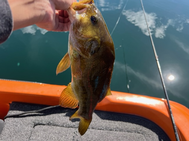 サカマタシャッド5インチ3.5gジグヘッドで10分もたたないうちにナイスサイズを1本キャッチ!