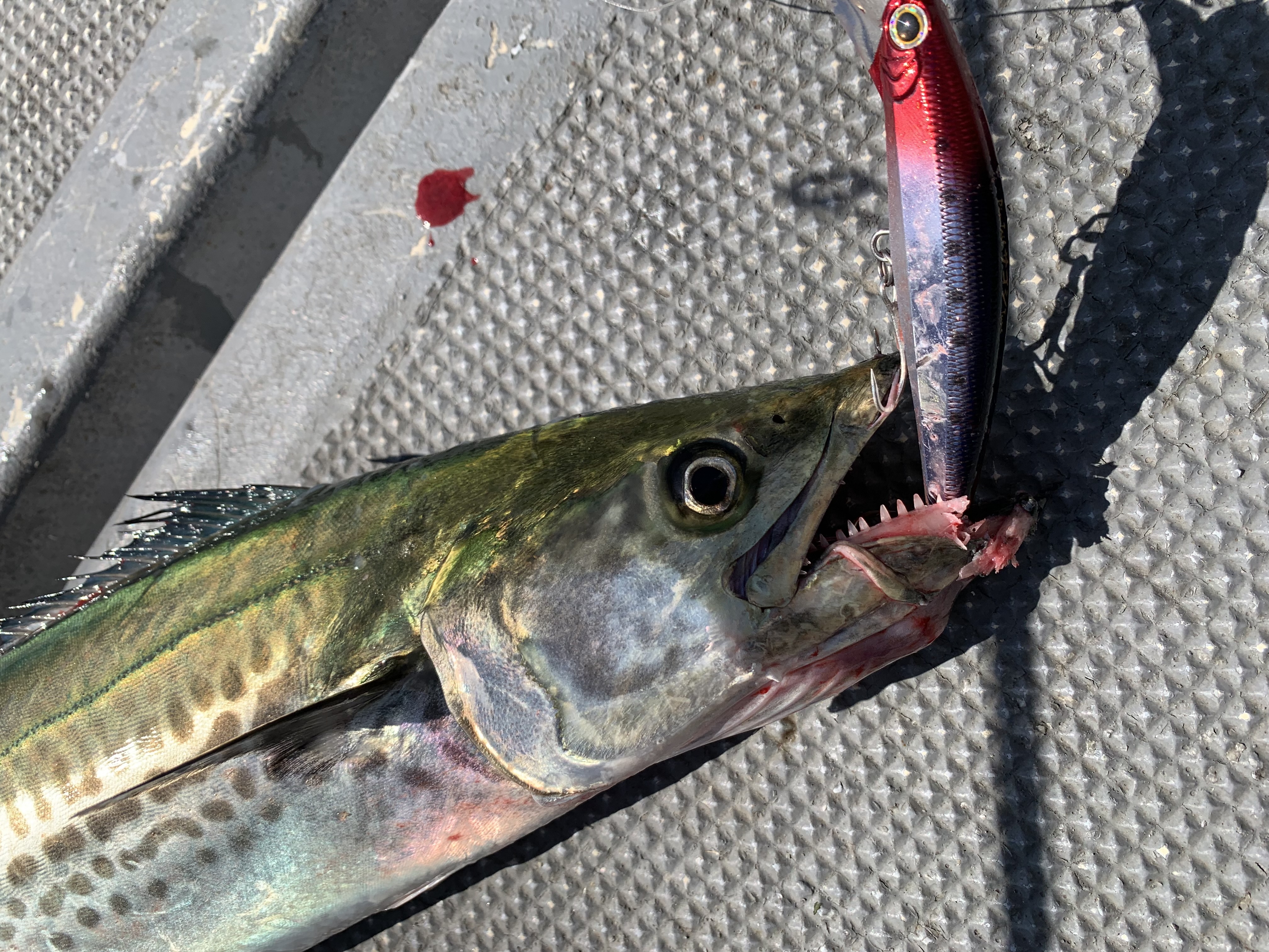 すばる丸様にお世話になり、サワラキャスティングに行ってまいりました!!今回はクレイジーオーシャン 実釣会!!クレイジーオーシャンのキャスティングロッド、オーシャングレイブ70MLを使わせていただきました!!30g前後のルアー、ジグがめっちゃ投げやすく、魚が掛かったらよく曲がりバラシが少ない!!ええ竿ですわ(´▽`)この日は午後便の初っ端からアタリ連発!!サワラは残念でしたが、私は良型サゴシが9本!!船中全員安打の大爆釣でした!!べイトが小さめのためか、ルアーはサゴシチューンとメタルマジックTGに集中しました!!青物の数も増え始めてます!!これからもどんどん釣れるサワラ青物キャスティング!!皆様も是非!!