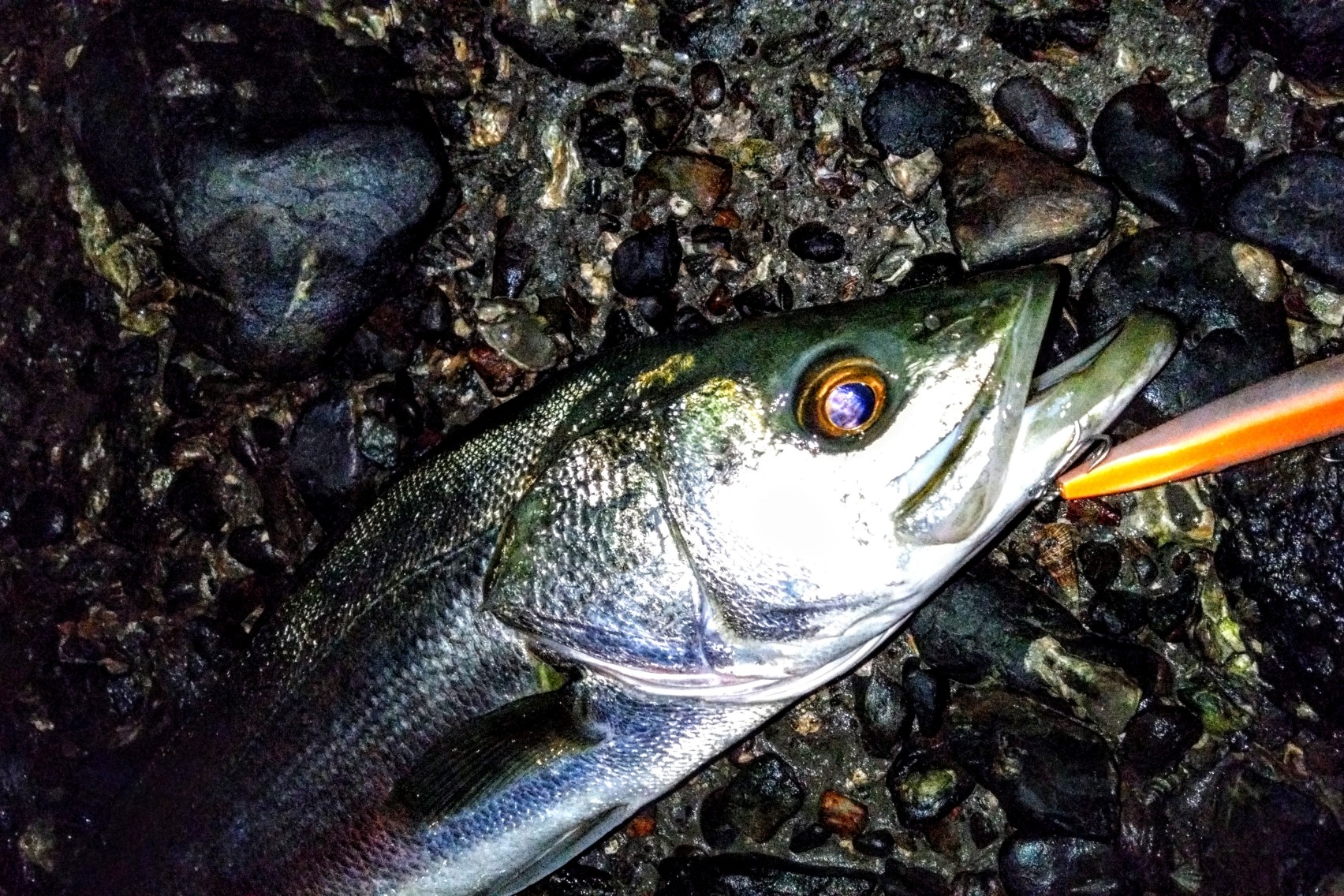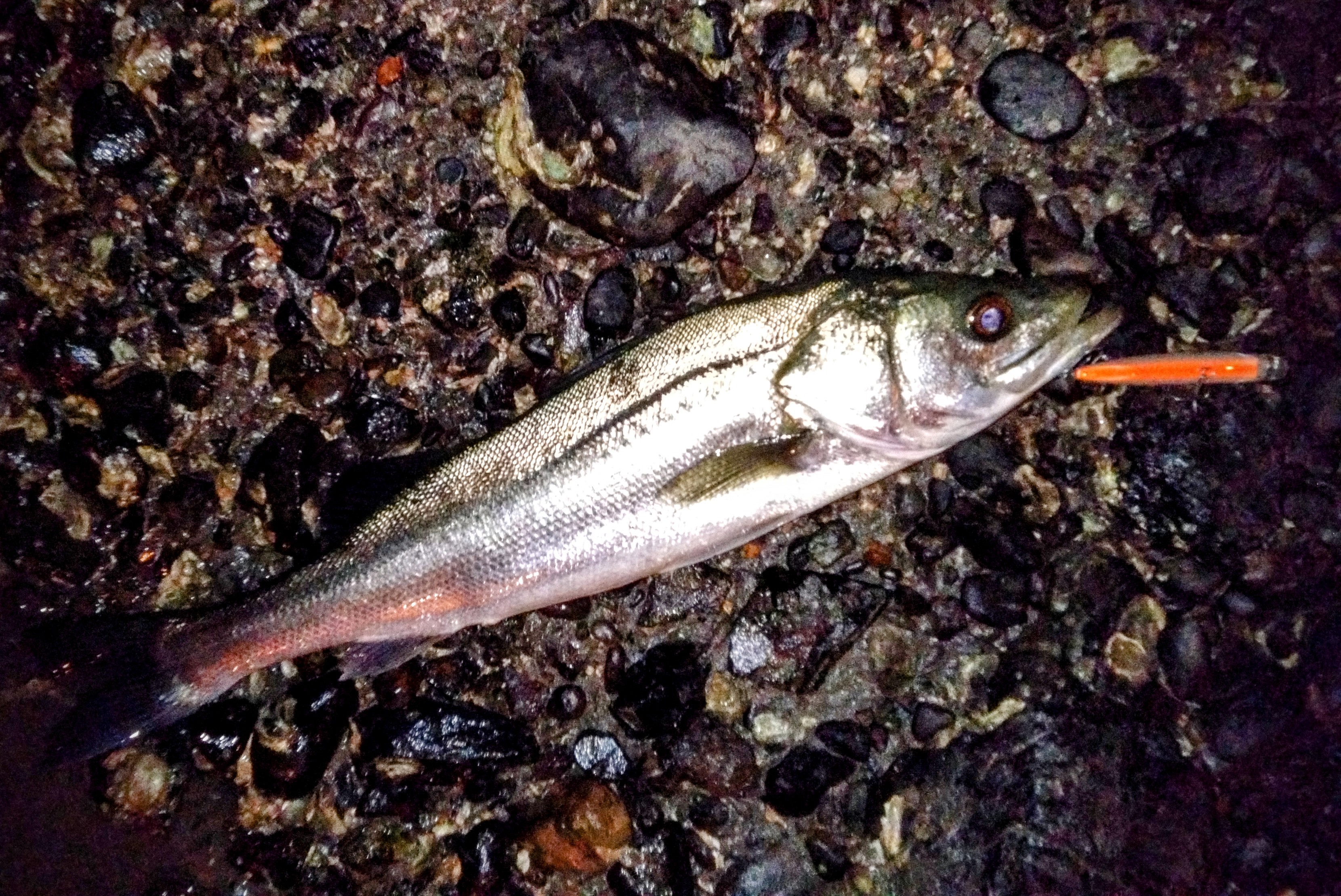 雨上がりの後は風が吹くのでシーバスの活性が上がるハズ…、という事で釣り場に向かいました!予想通りの風波が立ち良い感じ♪ 昼前から良く吹いていたので確実に口を使うであろうポイントへナチュラル系の120㎜クラスのフローティングミノーを入れていく…、反応が弱いのでアピールの強いウェイクベイト系フローティングミノーをライン先行で流していくと…、『フワッ…、ゴン!』元気な個体でヘッドシェイクからテイルウォーク!キャッチできたのは65㎝クラス!その後は掛けバラしが多くなり、反応のわりにフックアップ!とまでいかない状況、少し反応が弱くバラしが多いと考え。風が吹いて風波が強く波動がかき消されてしまっているかも?という事でウェイクベイトタイプの更に波動のキツめのミノーをチョイス!その後は入れ食いに近い反応で風波の時のウェイクベイトタイプの波動の威力を実感した釣行となりました。小一時間でシーバスを4本キャッチし、良い体験をする事ができました。風が吹いたらウォブリング強のルアーですね。