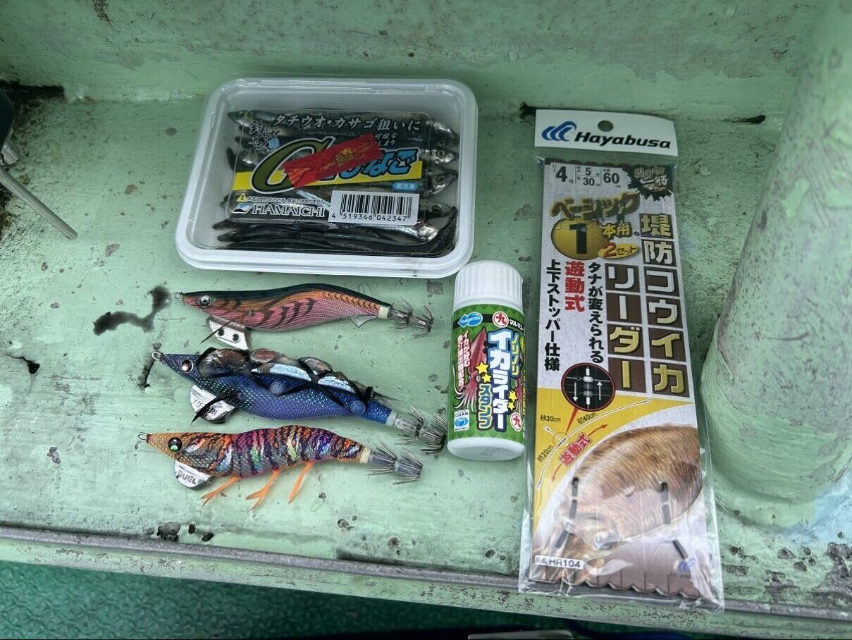 エサ巻きでのキビナゴやノリノリイカライダーなどのエギにニオイも付け挑戦しました。