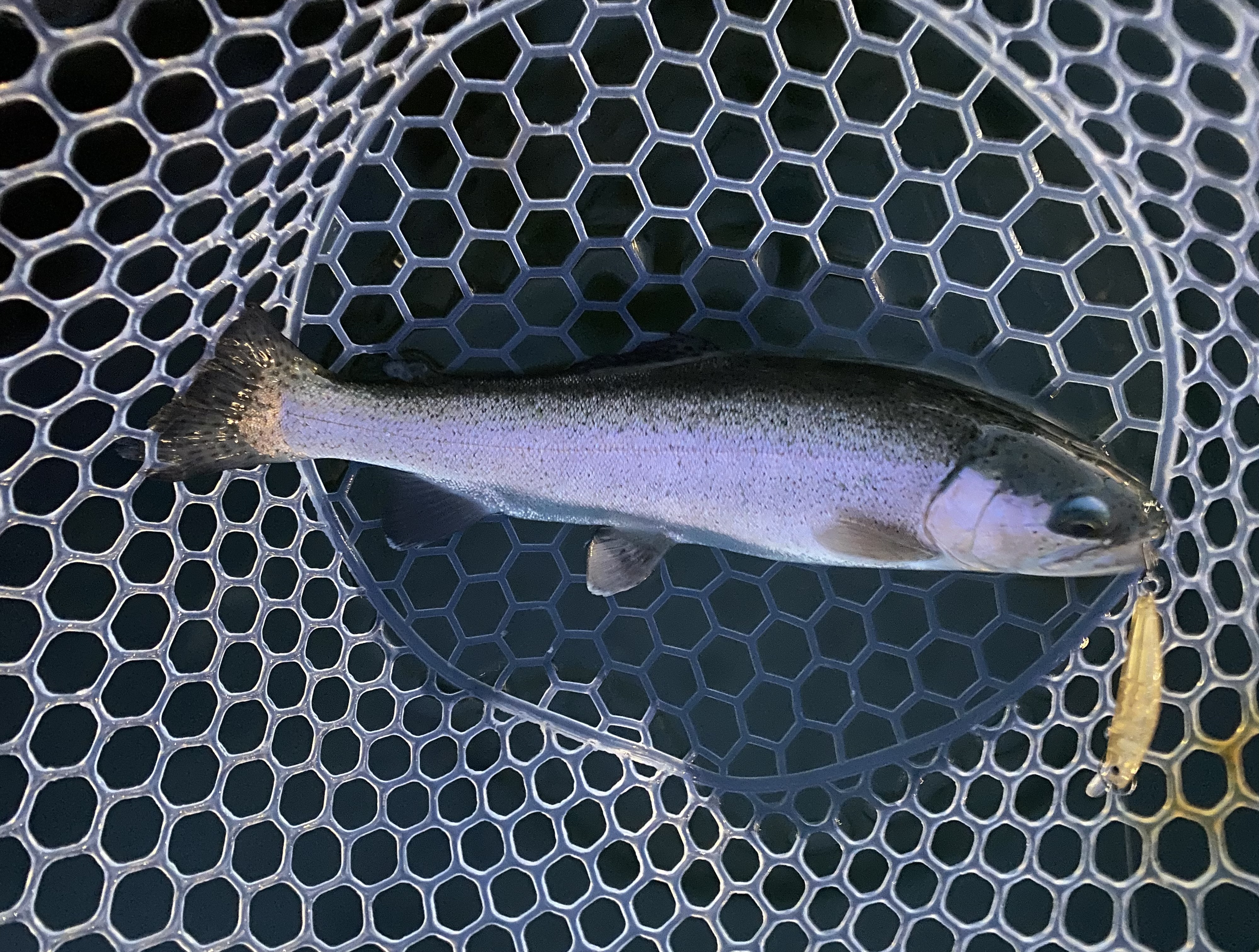 同店の岡君とアルクスポンド焼津さんでエリアトラウトに行って来ました!エリアトラウトは1年以上振り。そして初場所ということで気合いが入ります。目標は勿論赤身!12時頃からスタートし、最初はスプーンで狙ってみましたが反応悪く、取り敢えず1匹釣るためにセニョールトルネードを投入!あ、やっぱりこのルアー、釣れる!笑。何匹か釣った後はプラグに変更。鉄板のクーガナノの他、今回はライトソルト用のプラグも使ってみました!シマノ・アーマージョイント60Fやダイワ・メバルハンター50Sでもヒット!意外と反応がよかったです笑。ちなみに肝心の赤身ですが…岡君が夕方頃にキャッチしました!ヒットルアーは安定のセニョールトルネード!この日のアタリカラーはピンクでした。スタッフの方にお話を伺ったところ朝と夜に活性が高い場合が多いとのこと(アルクスポンド焼津さんは20時までの営業です)。軽食販売あり、トイレ・休憩所完備されているので初心者の方にもオススメです♪