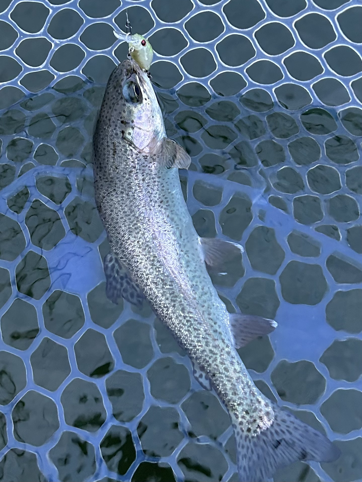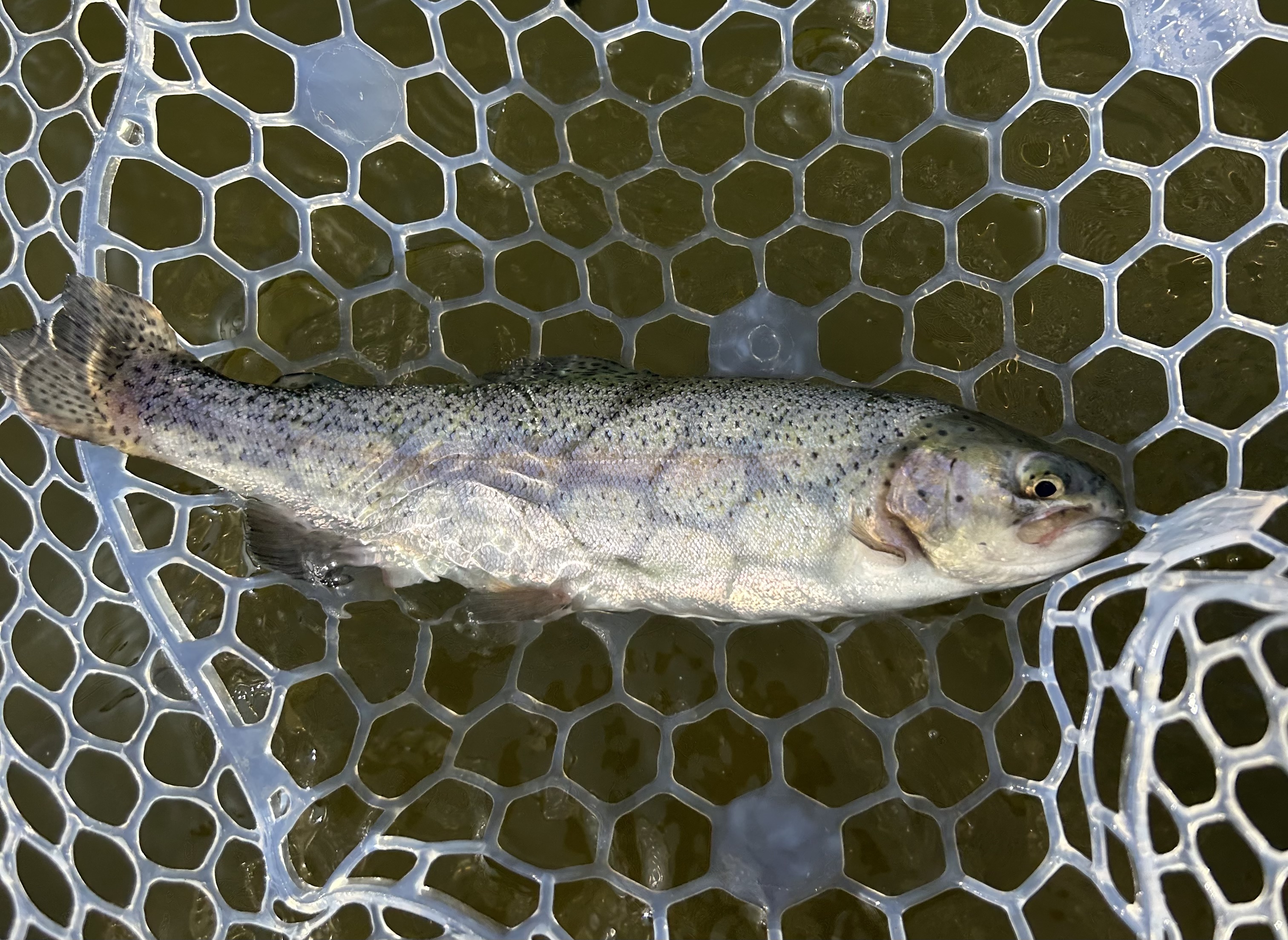 小型ニジマスをキャッチしたあと、大型の赤身が掛かりましたが痛恨のバラシ…