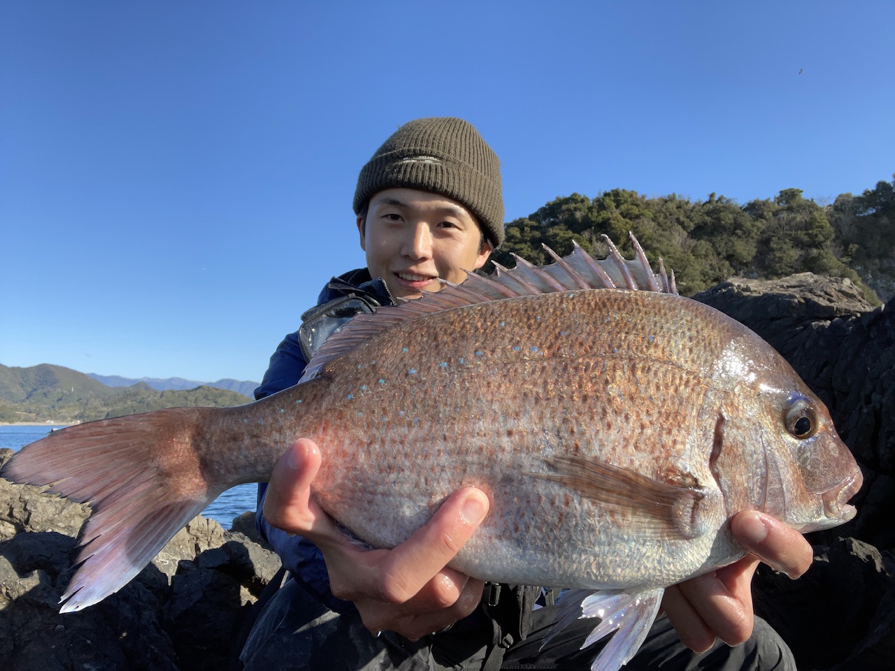 今この辺の磯では養殖真鯛の脱走兵がよく釣れているみたいです。またこれからの季節はノッコミの8kgを超えるような真鯛も釣れるみたいなので真鯛狙いの方はかなり強いタックルがあった方がいいかもしれません。