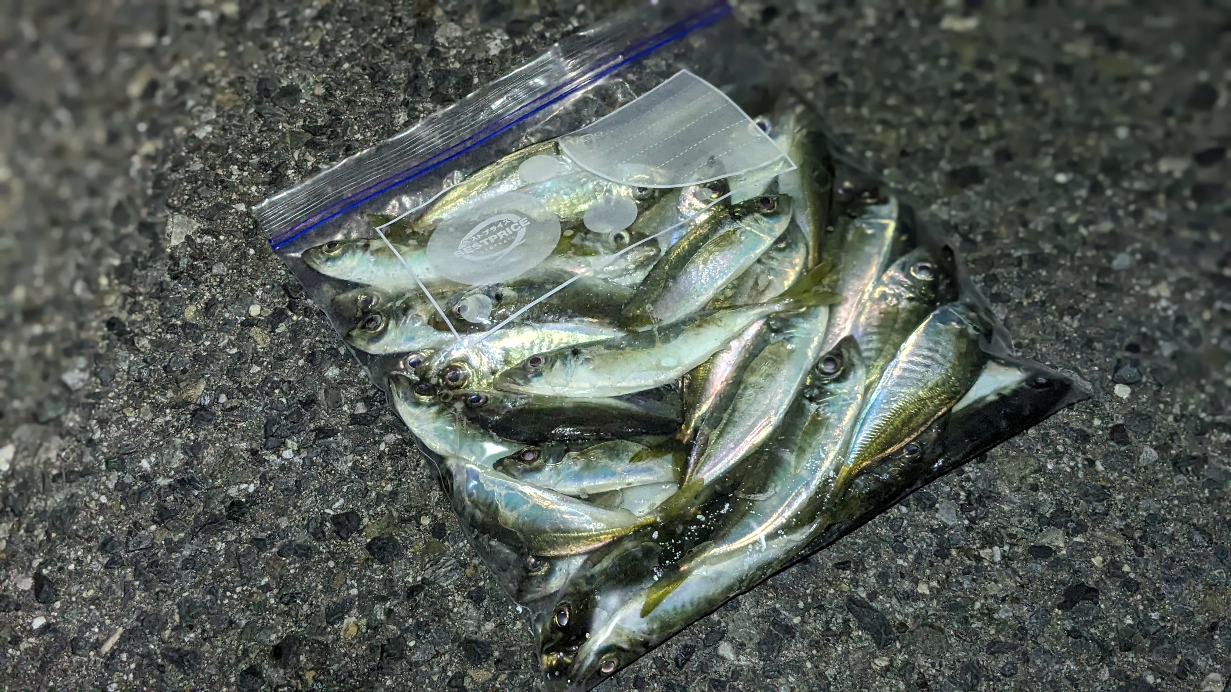 reinsの桃の天然水が当たりだったようで、一投毎にアベレージ18センチくらいのアジが釣れました!