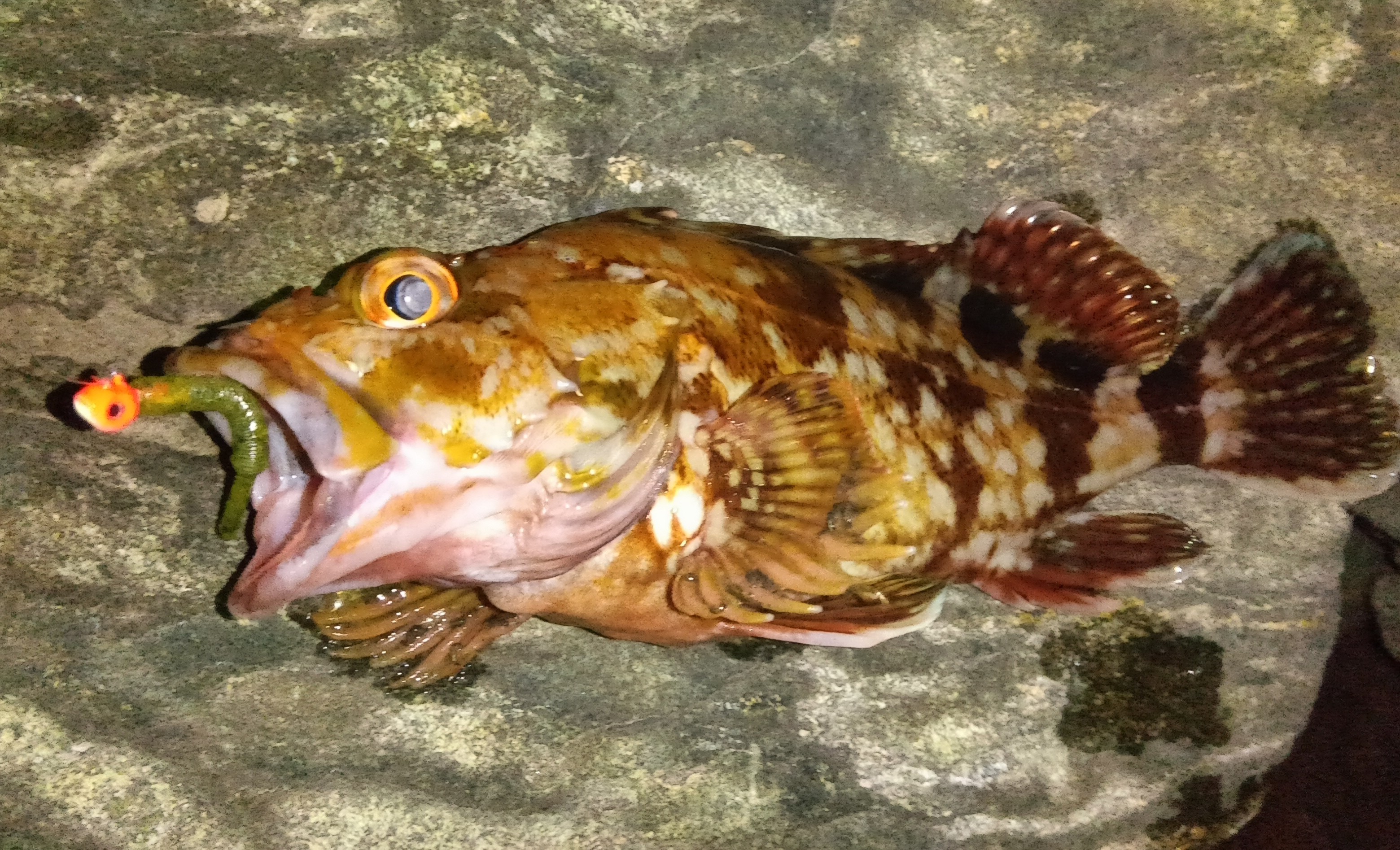 ワームのカラーを戻すとアタリ連発。良型、とまで言えないものの、20センチに迫るサイズばかり10匹くらい釣って終了しました。