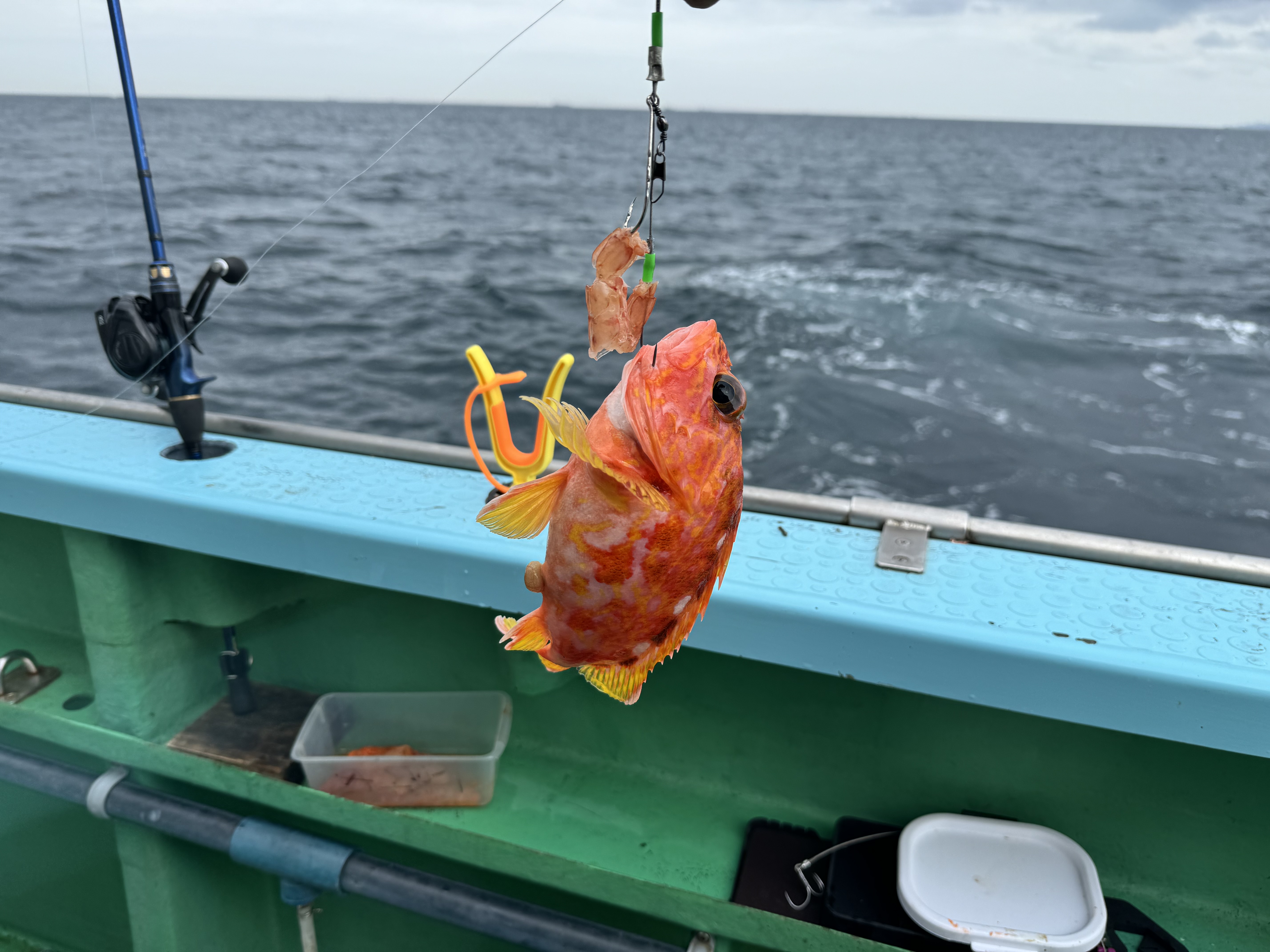 1日頑張りましたが、結果は船中0匹と坊主。外道でカサゴ、エソ、鬼カサゴが釣れました。