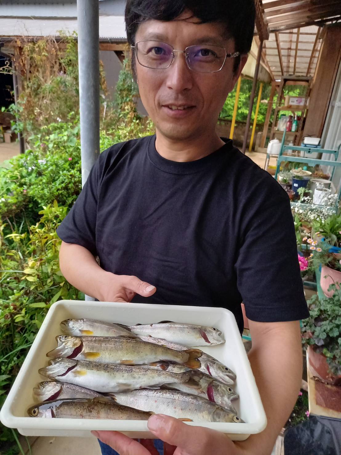 段々瀬でも、元気なヒレピンアマゴが釣れました。午後5時。納竿。結局すべてぶどう虫で釣れました。