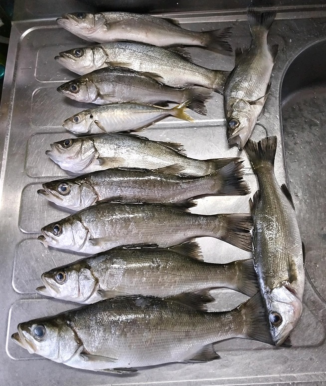 今回はセイゴ10匹にアジ1匹の釣果でした。
