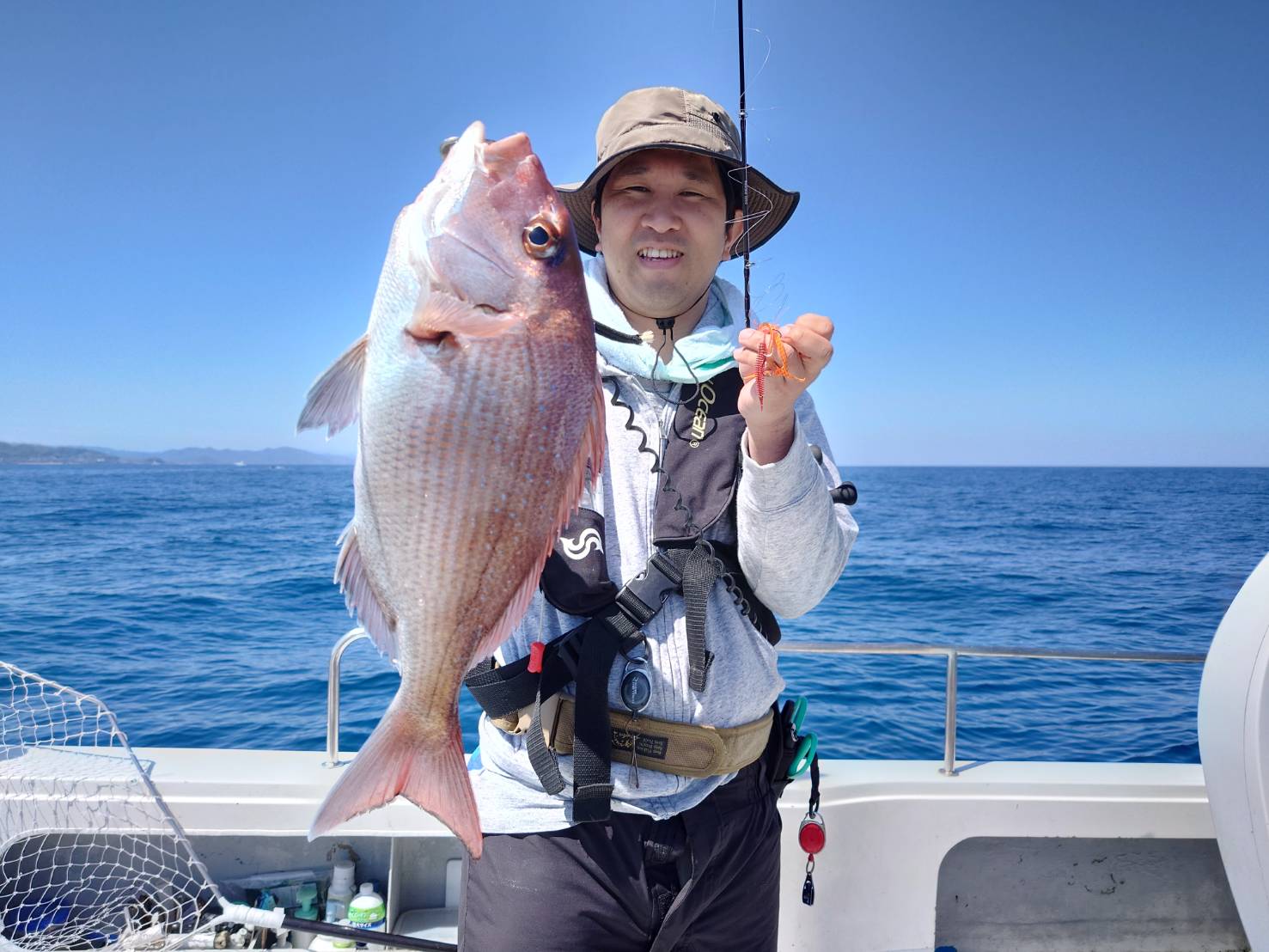 遊漁船アクアノートさんにて舞鶴沖でのタイラバ釣行に行ってきました、本日は潮がほとんど動かず水深100mクラスでも80gのタイラバでほぼ真下での釣りでした、タイラバの針にクレイジーオーシャンの海毛虫をセットして釣りをしました、舞鶴方面でもやはり海毛虫はかなり効果的です、本日は潮が動かないので、比較的速目にハンドルを巻き、30m以上は巻上げました、しばらく釣りしていると念願のマダイをキャッチ出来ました、その後もレンコダイ、アオハタ、ウッカリカサゴ、キジハタもキャッチする事が出来ました。同船者のキャスティング組もブリを釣られている方も見られました。
