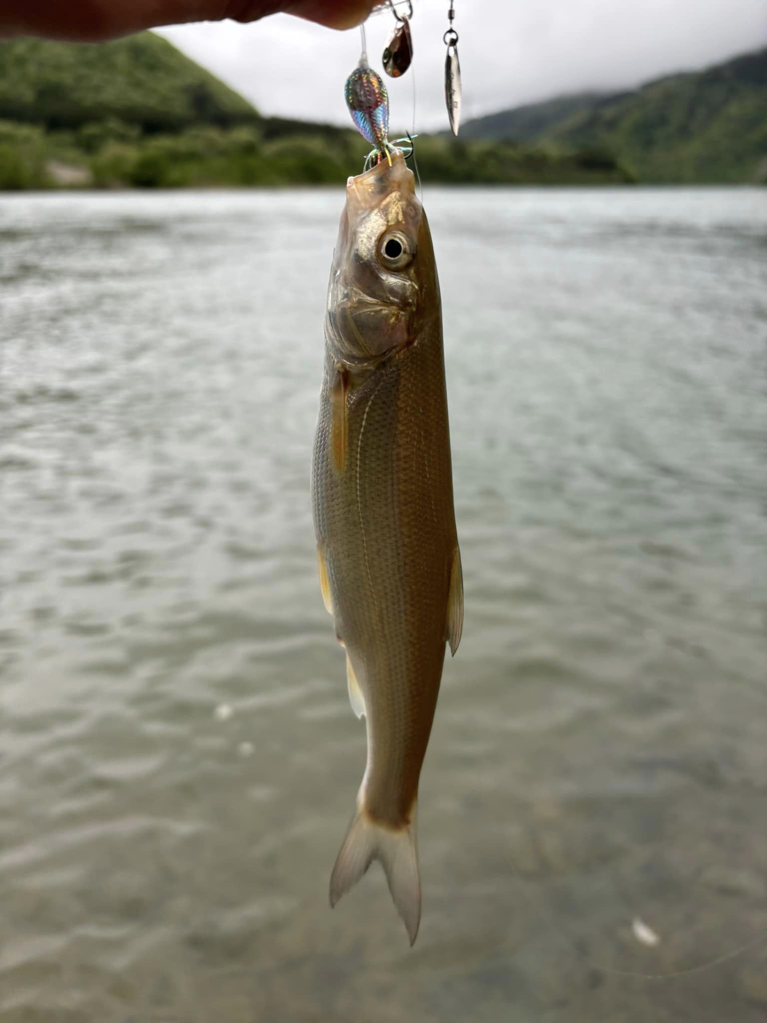 自作スピナーベイト、『メバルスピン』でウグイHIT(^^♪