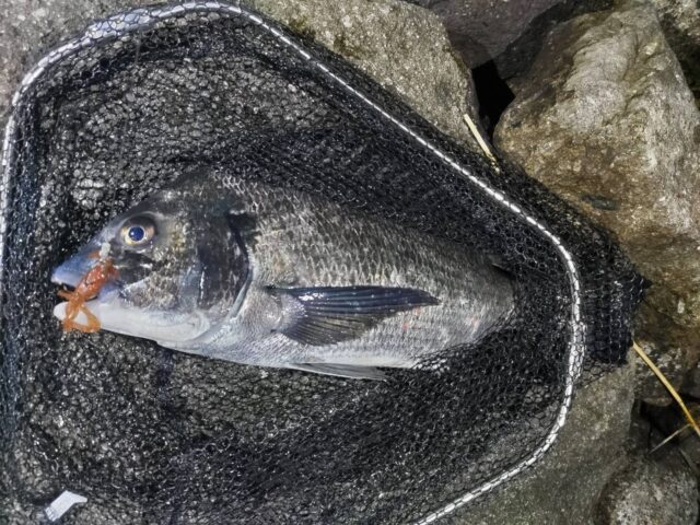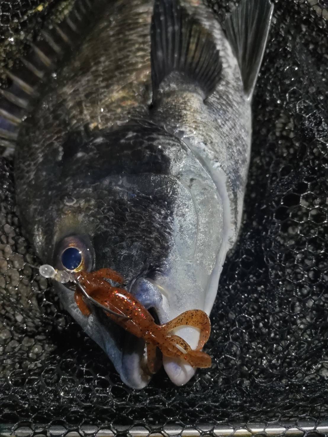 またまた仕事終わりにチニングに行ってきました!あのチヌのアタリが楽しすぎてついチニングに通ってしまいます!この日は21時40分くらいから釣りをスタート!開始早々にアタリがあり期待大な感じ!しかしアタリはあるもののに針掛りさせることができずなかなかチヌの顔を見ることができません。そうこうしていると同行者の石田君にチヌがヒット!私にもアタリはあるんですが…。チニングはアタリを感じてから針掛りさせるためにアワセを入れるこの瞬間が最高に楽しい釣りです!その後なんとか写真のチヌを1枚釣り上げることができましたがまだまだこれからワームやフックのサイズ、シンカーの重さなどチヌとの知恵比べは続きそうです!