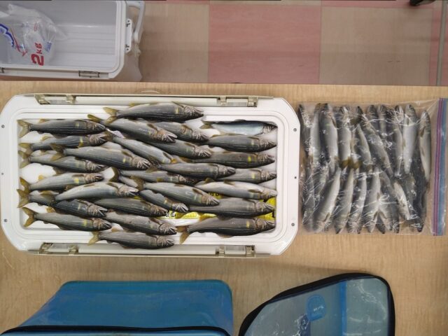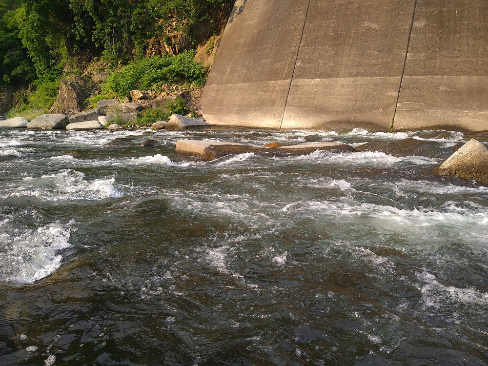 こんにちは~焼津街道店の三浦です。6月7日に山梨県の桂川に鮎釣りに行ってきました。当日は朝6時過ぎに出発し、8時頃には桂川に到着し、ポイントを3カ所程まわり、比較的に空いていた浅利川との合流で竿を出すことに。時間はすでに9時過ぎ、まだ水温が低いのか先行者もあまり掛かっていない様子。先行者の方に話を聞くと5匹程の釣果でサイズも小さい為、ポイントを移動されるとのことだったので、浅利橋下流の空いたポイントで竿を出すことに。開始10分程に1匹目。その後もポツポツ掛かり、オトリを確保できたので、瀬にオトリを入れると連発。しばらく入れ掛かりになり、13時30分までに約40匹。サイズも右岸側は悪くないが、左岸はサイズは小さい。右岸は崩れたテトラから鉄の棒が出てるポイントが何カ所もあり、13時30分までにメタルの仕掛けを4本切ってしまい、残った仕掛けは0.15号のフロロのみ。ポイントを移動し泳がせするも一気にペースダウンし、17時30分まで楽しみましたが、4時間で20匹程しか追加できず、62匹の釣果でした。