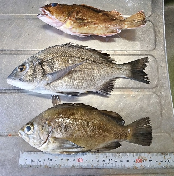 二晩目はアジ25㌢までを35匹メバル23㌢1匹カサゴ1匹クロダイ1匹でした。