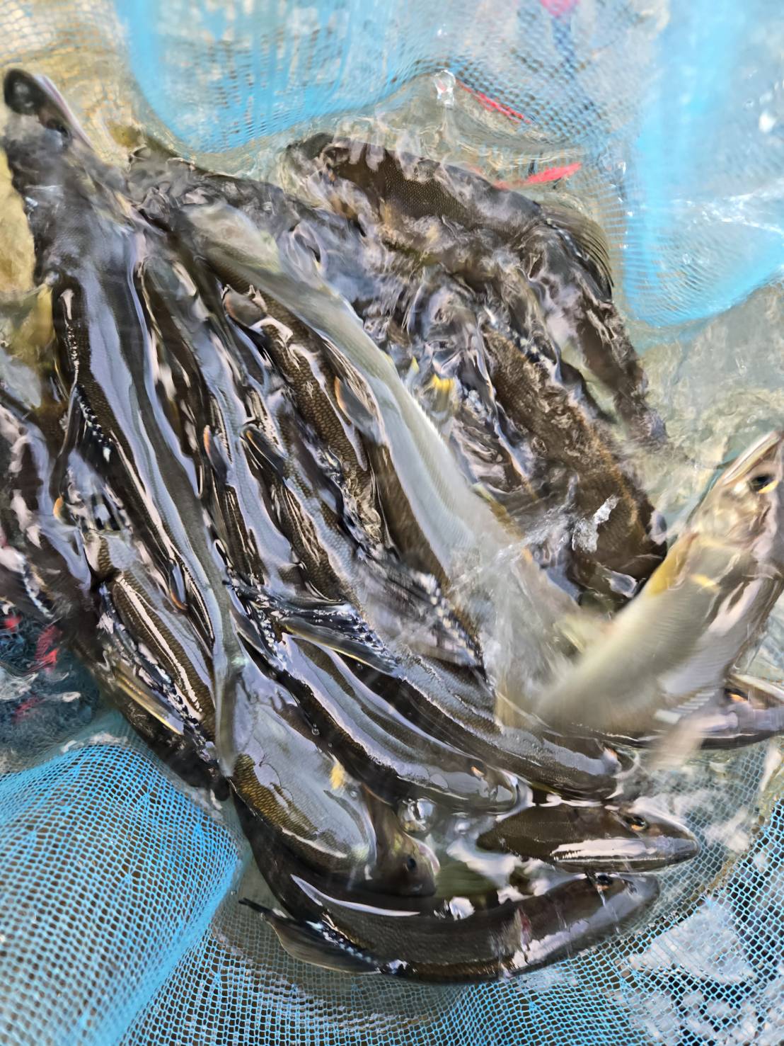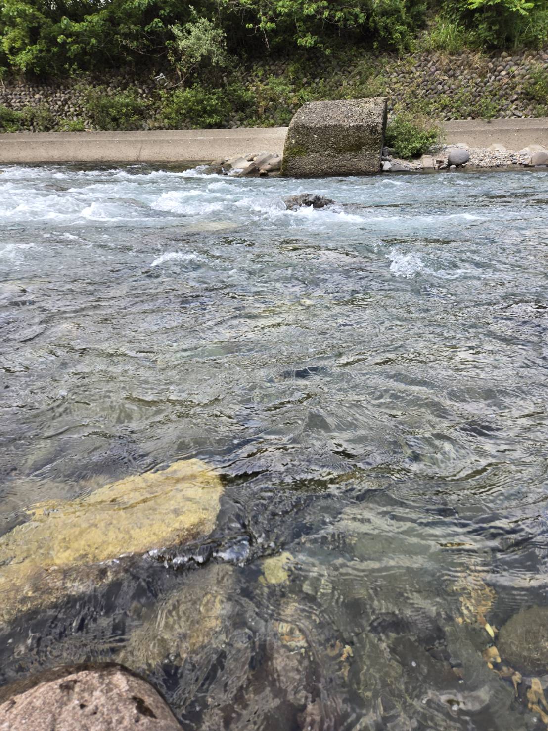 今シーズン初鮎釣りです。先週解禁したばかりの郡上へ行ってきました。入った場所は大和の梨畑付近。ポツポツ掛かり昼までに12匹の釣果。人が増えて釣る場所も限られてきたので場所移動します。平日でもすごい人!なかなか入る場所が無く1時間以上彷徨い越佐あたりで入れるスペースを見つけ釣ってみます。良さそうな瀬肩付近を探りますが反応なし。瀬はどうか?とオトリを入れるとガツーン!この時期にしては型の良い20cm!この日は瀬のほうが好反応。たまにビリ鮎も混じりますが真っ黄色の綺麗な鮎が掛かります!入れが掛かりはありませんでしたがポツポツ拾い24匹の釣果でした。解禁して1週間が経ち釣り荒れぎみになってますが、そこら中で鮎が跳ねており浅場には小さい鮎が見えますので今後も期待できそうです