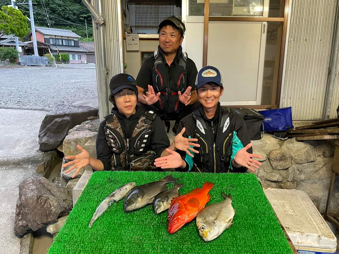 紀伊長島の一栄丸渡船さんに行ってきました!前日は大荒れ。当日は波も残り波裏磯へ!午前&半夜釣り共に西穴裏へ渡して頂きました(^^)グレ、イサキ、マダイなど何でも釣れる磯です!当日は、鈴鹿店、東氏、津店、西牧氏と3人でワイワイと釣りを楽しみ!2人の釣りを見て楽しみ少し釣りをします(^^)私の釣果は、貧果…。ババタレ、ブダイ、オオモンハタ、コッパグレ…。バラシ1回…。それでも賑やかな釣行となりました(^^)グレは最大は、東氏の37cm(≧▽≦)私の本命イサキ!?は…不発で終了しました(*´ω`*)