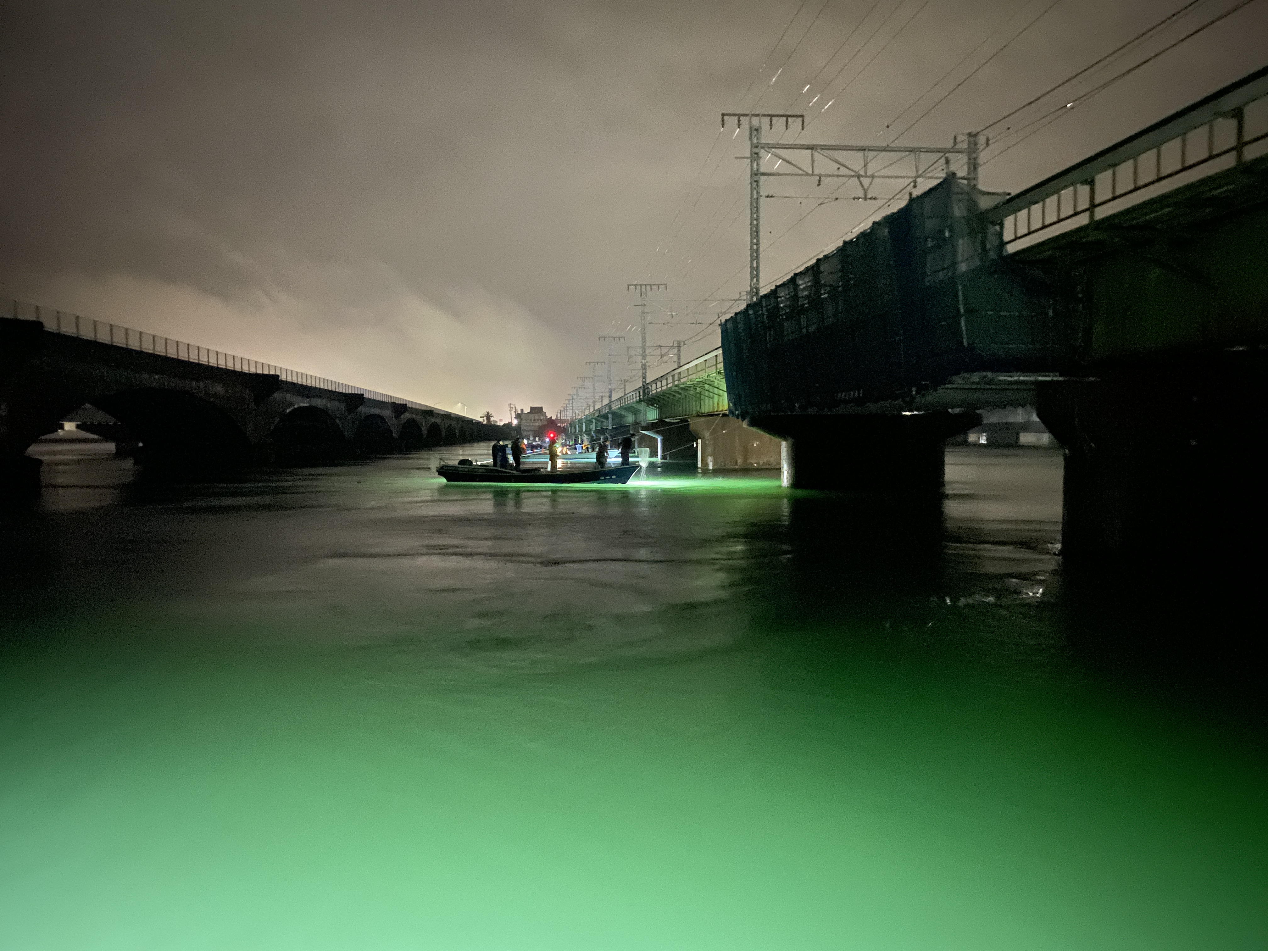 23日の仕事後、大雨のなか浜名湖の極漁丸さんのえびすき漁へ。