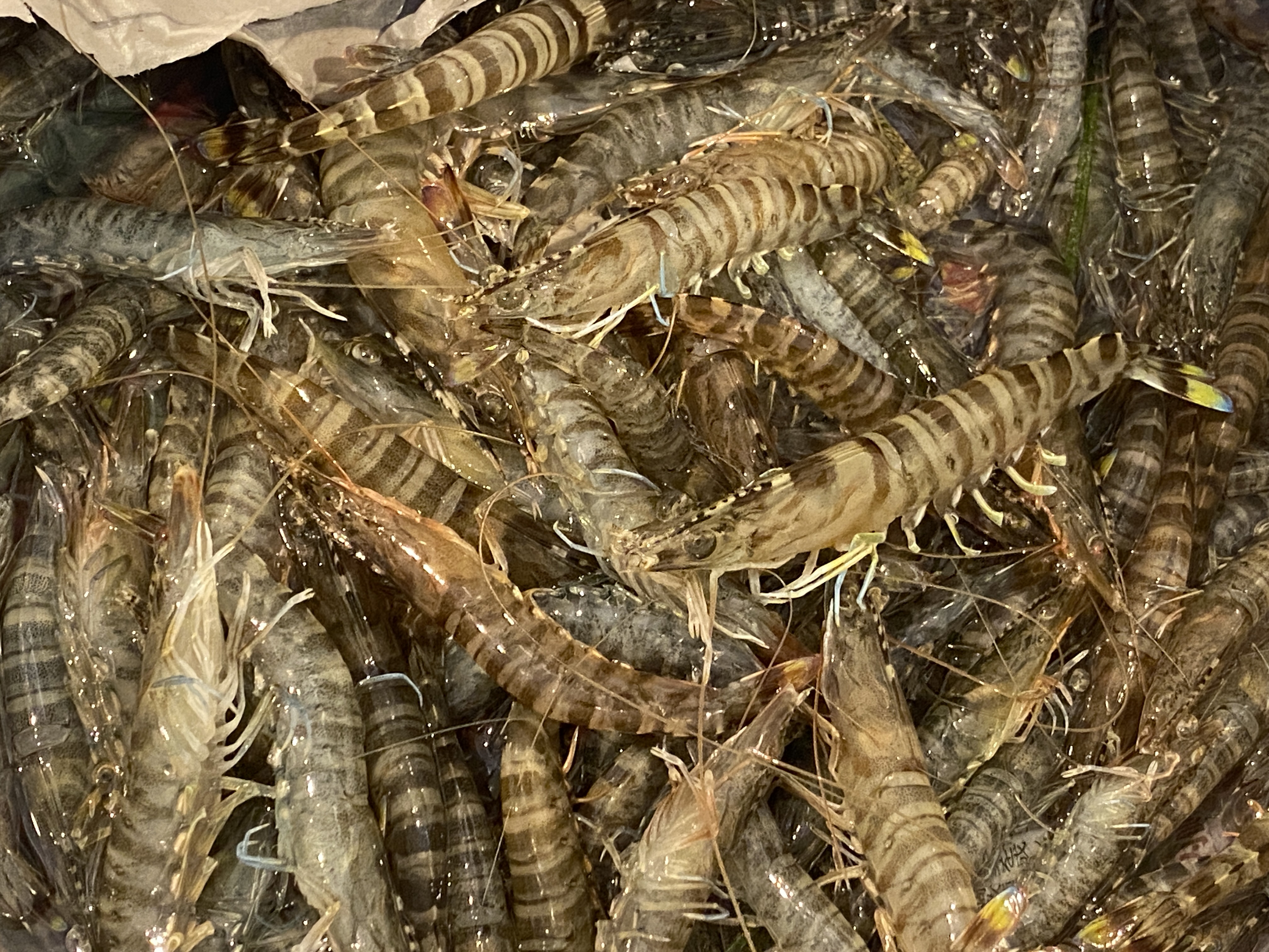 雨で水面がざわついて何も見えない時間帯もありましたが、超忙しいラッシュもあり終わってみれば生簀の中はエビでいっぱい!