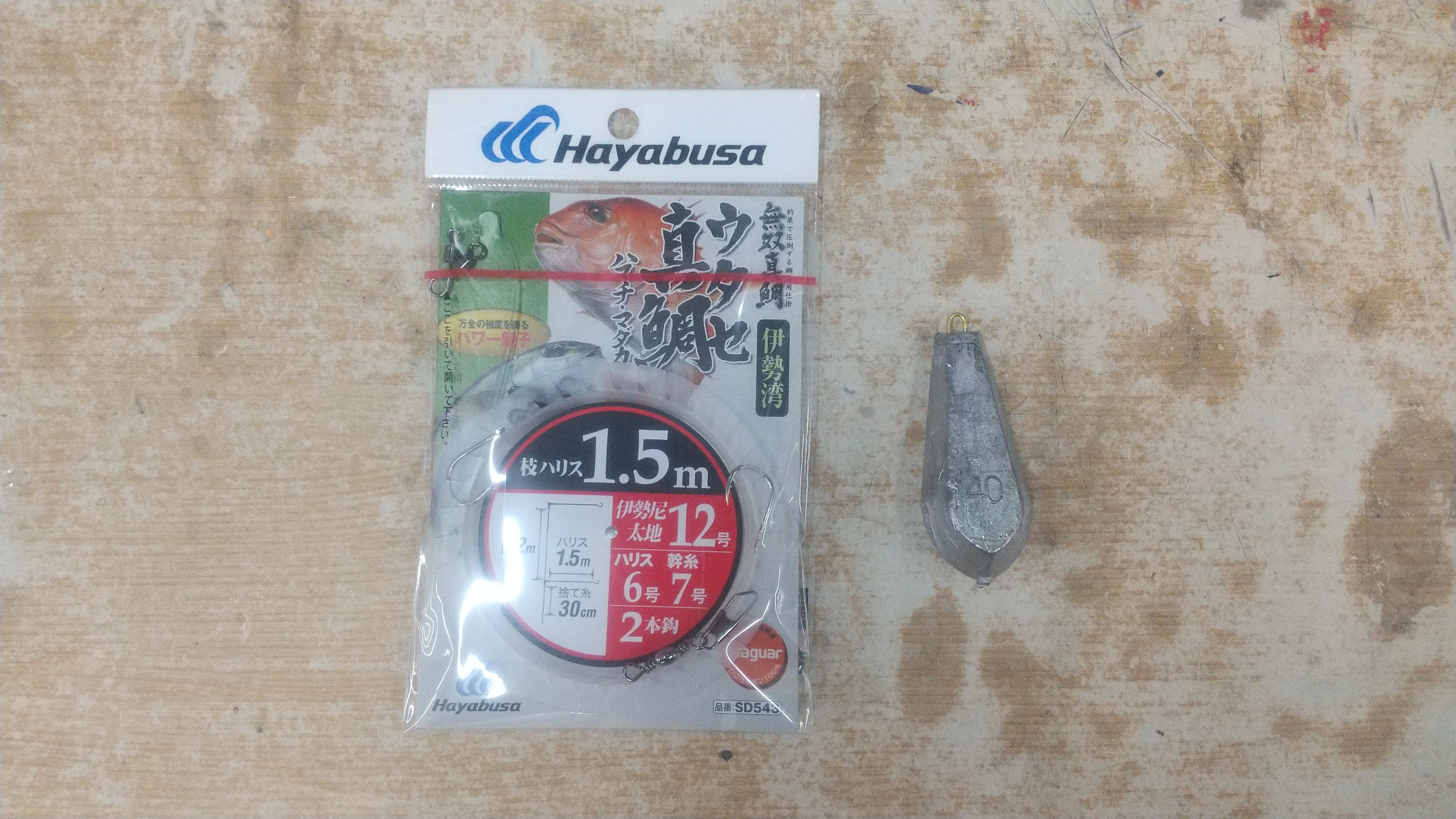 今回は、片名漁港より出船の海王丸さんにお世話になりました。船中ではヒラメ竿やイサキ竿、電動や手巻きリールなど様々なタックルが使用されていました。道糸はPE2号、ハリスはフロロカーボン6号以上が良いようです。錘は時期やポイントにより毎回変わるとは思いますが、今回は40号が最適でした。