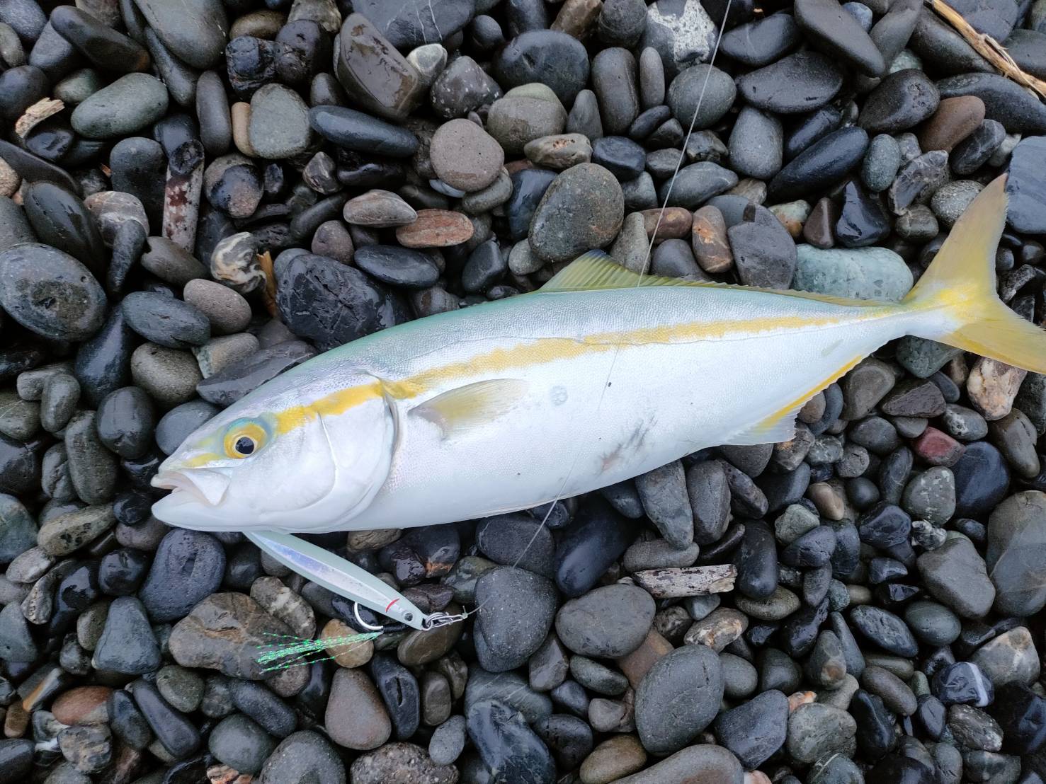 そのあとはタチウオのアタリはなくなったものの40cm近いマルアジが釣れました。