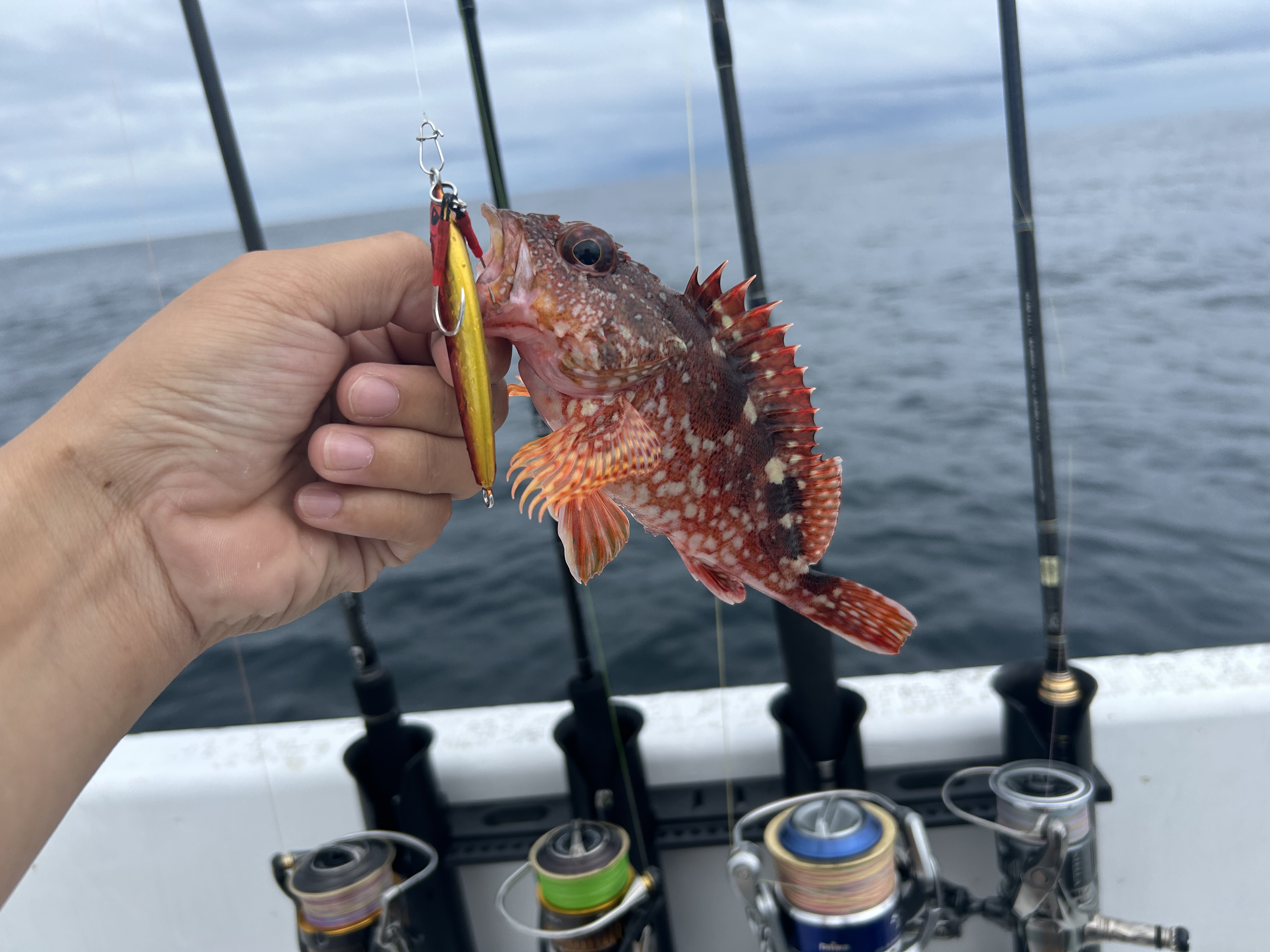 三重県志摩市浜島出船のフィッシングビレッジりなちゃんにお世話になりレンタルボートで五目釣りに行ってきました。出船は5時天気が危うかったですがなんとかもちこたえてくれました。ワームジグで根魚を狙ったりタテ釣りで大物狙ったり結果3人で10魚種以上は釣ることができました!!途中雨が降りびしょ濡れになりましたが寒さ忘れるくらい楽しい釣りができ大満足でした!!最後に1.2メーターくらいのハンマーヘッドシャークのパワフルな引きを楽しみ帰港となりました。皆様もすきなときにすきな釣りができるもレンタルボート楽しんでみてください!