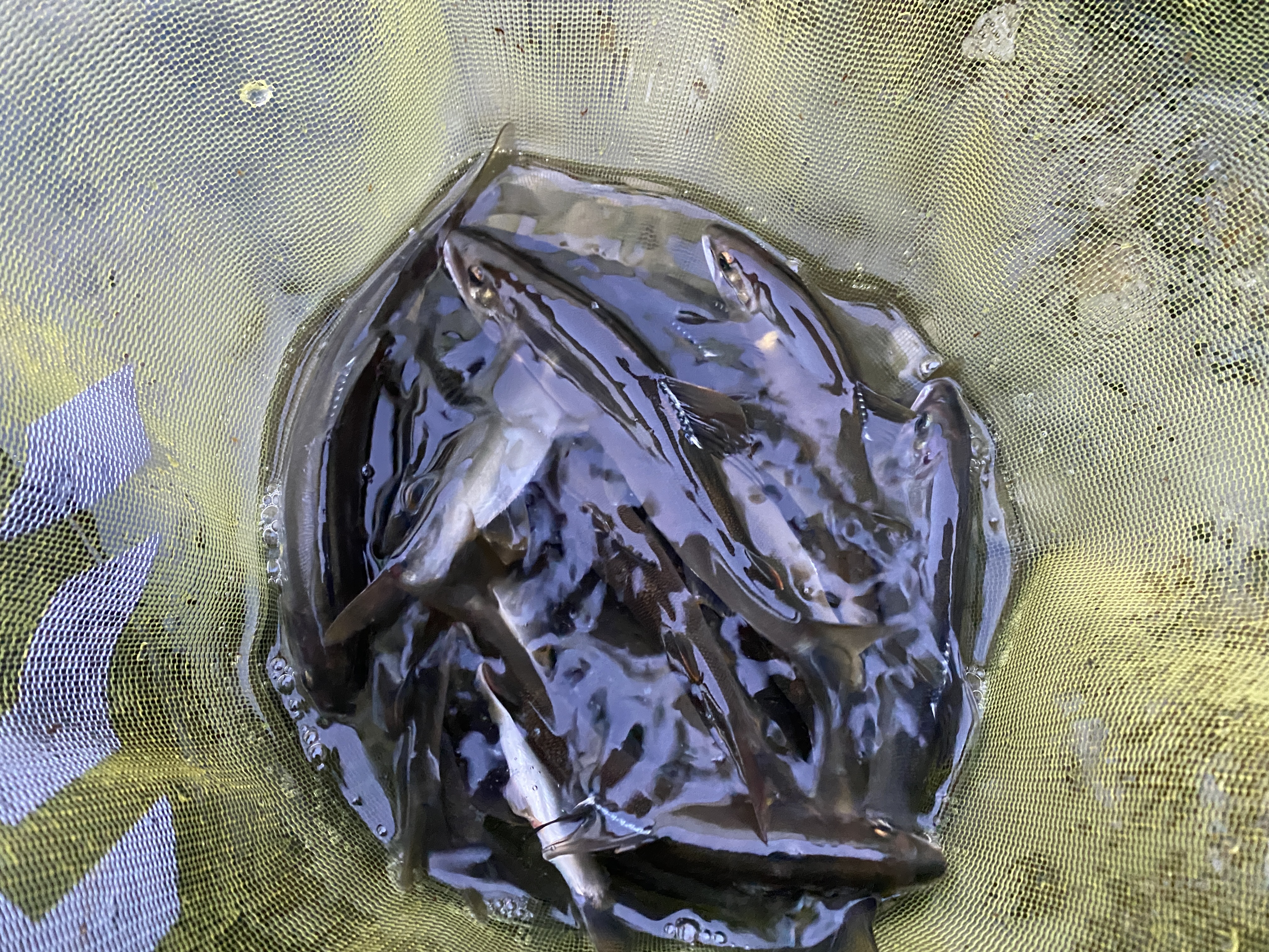 ちょっと釣り上がると瀬の中がキラキラ!! 入れると18~19cmがひたすら入れ掛かり。 ミスしつつ30~40分で10本以上は釣ったでしょうか。