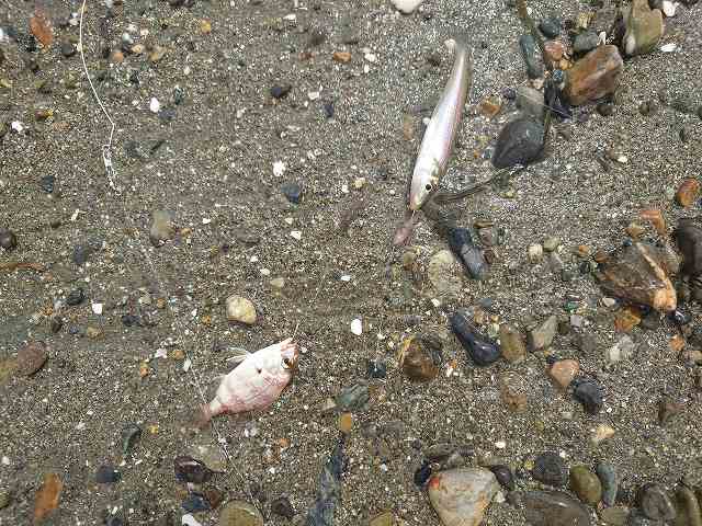 この日は9時半から11時までの時間で釣行、キスのサイズは小型がほとんどですがキスの豪快なアタリを楽しむことができました。エサは石ゴカイハーフの量でも十分です。今年もチャリコ(真鯛の幼魚)が大量発生しておりアタリはあるが針にかからない現象が多数。その中でキスがいるポイント探すのが楽しみです。柔ら目のルアー竿に1号以下のPEライン、5号くらいの軽めのオモリ、すべて道具はライトにするのが小型の魚でもより楽しめるのでおすすめです。できれば満潮前後で朝が涼しくて釣りやすいので釣行の時間も考えて行きましょう。